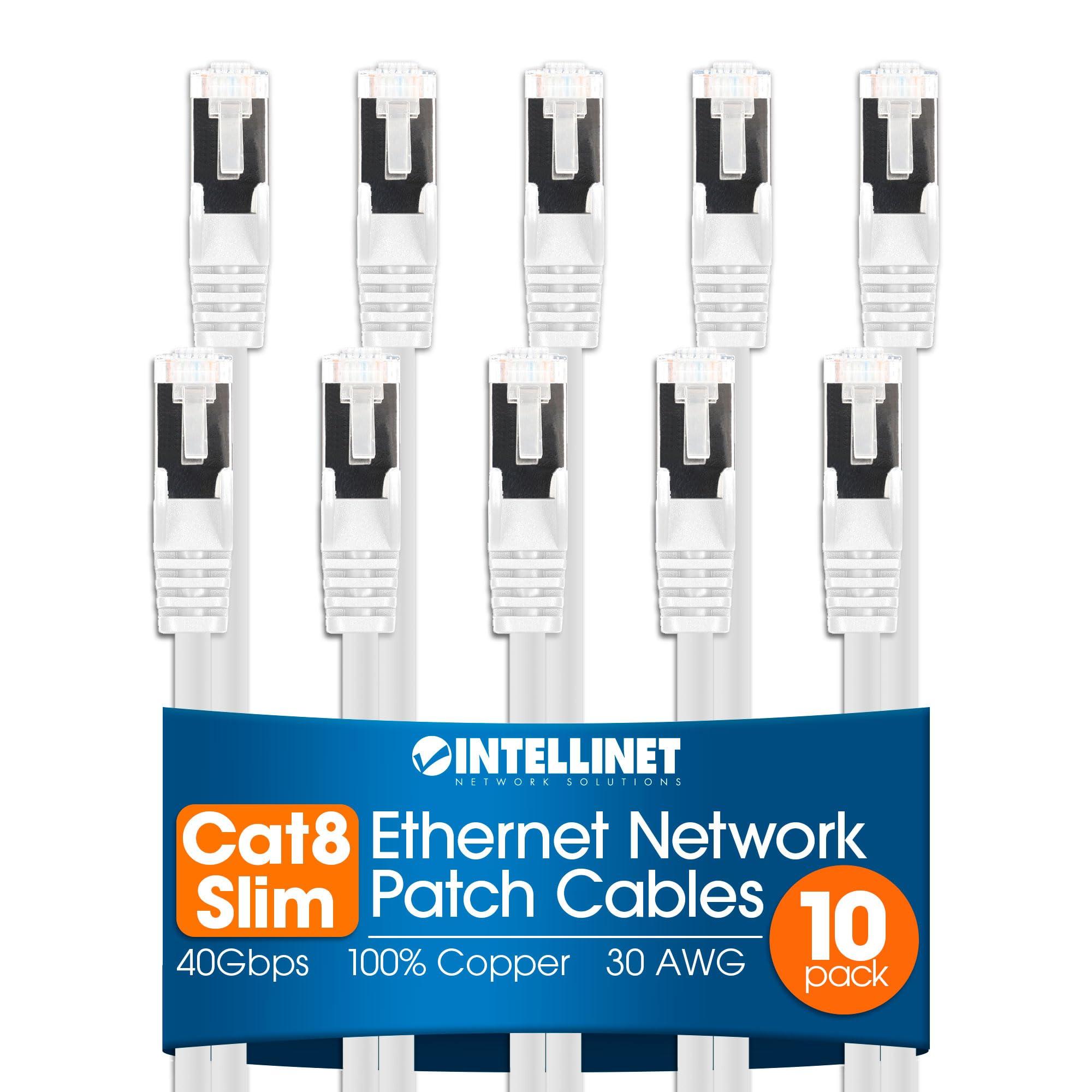 Intellinet Slim Cat8 Ethernet Network Patch Cable 10-Pack - 40Gbps & 2000MHz, Snagless Boot, 30AWG Pure Bare Copper Wire, Gold-Plated Contacts, Lifetime Mfg Warranty 5ft, 10 Pack, White