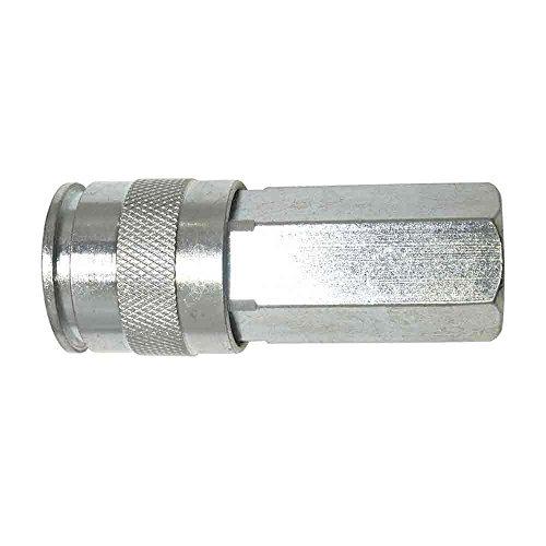 Interstate Pneumatics 3/8 Inch Universal Steel Coupler x 3/8 Inch Female NPT. These couplers are interchangeable with the Universal Standard series couplers produced by other manufacturers. Precision machined from solid steel bar stock which provides longevity during mechanical shock in rugged applications. Maximum working pressure 300 PSI.