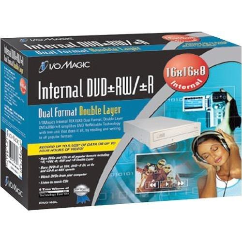 I/OMagics blazing fast 16x16x8 DVDRW/R simplifies DVD ReWritable technology with one unit that does it all; giving you the ability to read and write to popular formats including DVD+R(DL), DVD-R, DVD-RW, DVD+RW, DVD+R, CD-R, CD-RW. Dual Format technology gives you the freedom to choose the media format (-R, -RW, +R, +RW) that is most compatible with your computer or home DVD player, while the Double Layer technology allows you to store twice as much data on DVD DL media; thats up to 8.5GB of storage! With an increased write speed of 16x for +R and -R, and 8x for +RW, you can create your own DVD movies and music CDs in minutes! Includes a free black faceplate. Now you can change the faceplate of your drive from standard beige color to the included black faceplate to match your computers appearance.