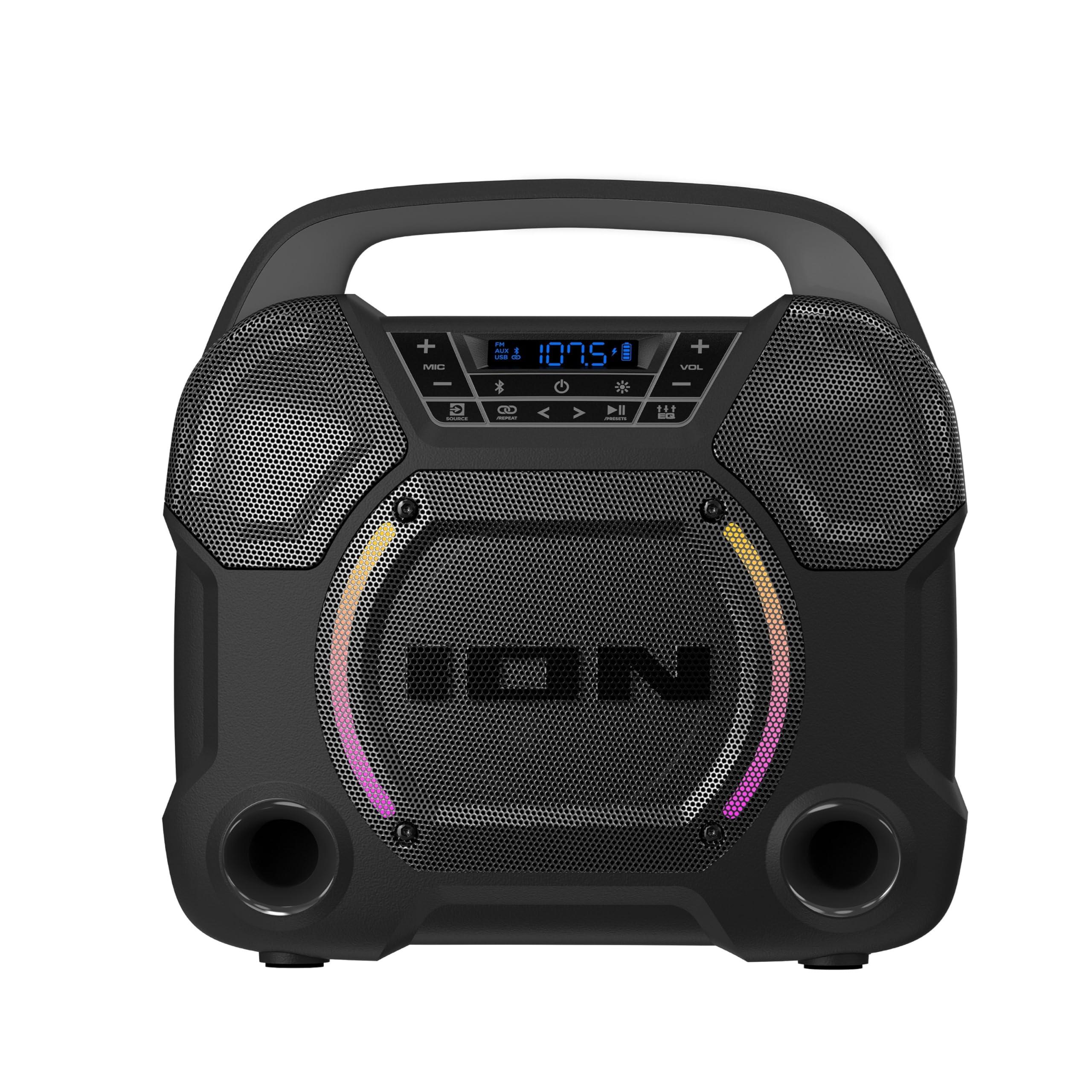 ION Audios Trailblazer Roar is a wireless speaker system with a rechargeable battery that offers premium wide sound via 3 speaker design that delivers massive ION sound and allows you to enjoy the best sound anywhere you want to take it, because it is portable and powerful! The Trailblazer Roars portable speaker powerhouse is Bluetooth 5.2 enabled and streams music and audio from your preferred Bluetooth-enabled device and pumps up the jams powered by the three-speaker sound system. Trailblazer Roars three- speaker system includes one 6.5 woofer and two 2.5 tweeters. Trailblazer Roars three speakers and wide-range sound, provides audio from a wider sound arc than a typical portable Bluetooth speaker. The Trailblazer Roar gives you more speakers, therefore providing you with more massive sound!