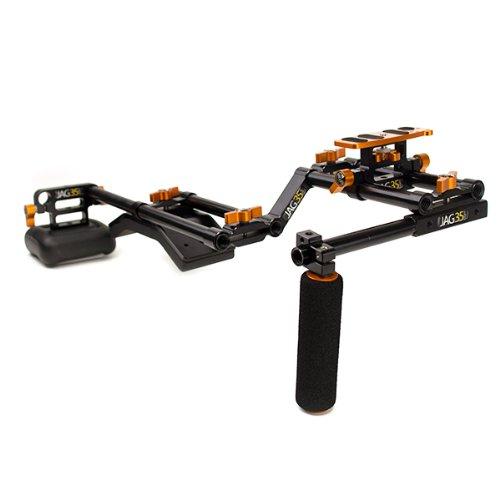 The Austin Rig v2 was inspired by a recent trip to the SXSW Festival, looking for more options in rigs that are easy to travel with, Jehu took it to himself to design a rig that offered many options but still kept size and weight to a minimum. The Austin Rig is a balance between some of the small rigs such as the Field Runner, and the much larger rigs such as the Full Shoulder, giving you a medium sized rig, that offers the best of both worlds. Featuring the popular offset design found in many of our other designs, the Austin Rig puts the cameras LCD screen and viewfinder right in front of the shooters face, giving them full view of what they are shooting. The Austin Rig also features JAG35s double-offset counter weight system that provides exceptional roll axis balance and stability. Giving the Austin Rig the ability to be used with only one hand also frees up the shooter to conveniently operate a follow focus system. Balance. JAG35s unique double-offset counterweight system means that the rig stays balanced on the roll axis, even with the camera offset. You can reposition the counterweight depending on the size, weight, and configuration of your camera, so that the counterweight is inline with the shoulder pad or double-offset to perfect the balance for every configuration. Better than ever. Weve taken our Austin Rig and made it better than ever, upgrading all the components to our new version 2. Slowly weve been improving the way we manufacture and machine our products, resulting in a smoother surface and a allowing for a better fit with rods of any brand. Our Knobs are also now machined to get a tighter, stronger grip on the rods, meaning you can build the most rigid and durable rig possible. Many of the rail-blocks (for example the one attached to the shoulder pad) no longer require tightening 2 knobs for assembly. Switching to a single knob system makes assembly and disassembly quick and efficient, and also easier on your fingertips.