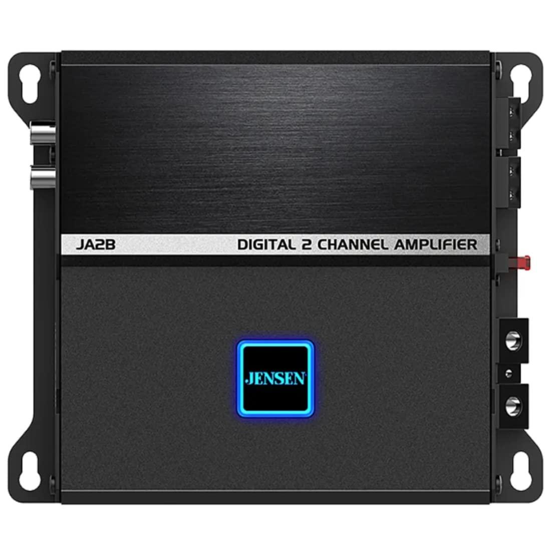 Jensen DSP AMP App (Apple/Android) RGB Custom Color Illumination Class D Design High Level (Speaker Wire) Input Low Level (RCA) Inputs Dimensions: 2.16 X 6.57 X 5.59 (HXWXD) Adjustable Bass Boost At 45 HZ CTA-2006-D Certified