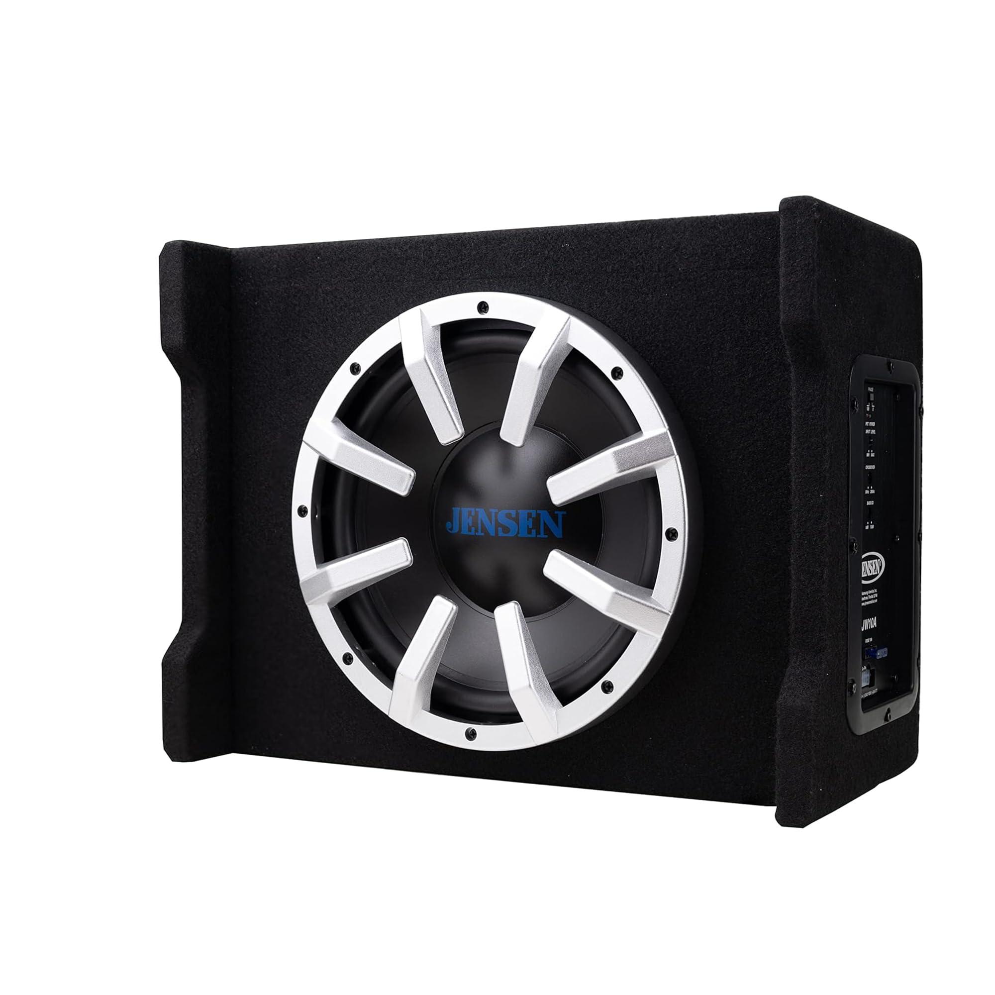 The Jensen 10" Subwoofer in Multi-Mounting Vented Enclosure is a force to be reckoned with. The vented enclosure with computer aided design vastly increases output efficiency for your subwoofer providing you with consistent low sounding bass. Its 10-inch subwoofer delivers up to 300 Watts of Peak Power and 100 Watts RMS at a 4 Ohm Impedance and Frequency Range between 40Hz-250Hz for unmatched output efficiency that suffices even bass enthusiasts