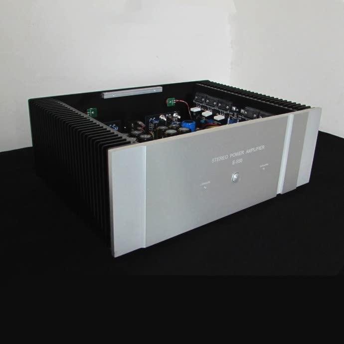 E-550 Pure rear stage introduction The amplifying part of the circuit refers to Golden voice E-550, the original machine is a combination machine with front stage, the pure rear stage comes from the original machine rear stage part and the parameters are modified according to the actual calibration, the input is diamond diamond structure, input tube (the original machine is transistor), the biggest advantage of this structure is excellent dynamic, harmonic distortion is small, the signal-to-noise ratio is very high; E-550 pure rear stage startup close to the horn and shutdown can not hear any noise, the front stage noise after the output, with different styles of the front stage reduction is very good, is a very cost-effective rear stage! E-550 pure rear stage parameters Frequency response: 10Hz-110KHz(+0/-2dB) Input impedance/sensitivity: 47K/2V Magnification: 22 times Output rated power: 200 W +200 W (8 ohMs); 300 watts +300 watts (4 euros) SNR: 115dB Power supply: AC220V domestic voltage fluctuates up and down AC210V-240V range Harmonic distortion: 0.01% Input interface: RCA stereo Output interface: stereo double - line split output Size Weight: 430 W *165 H (high including aluminum footpad)*345MM(deep including binding post) Weight: net weight 18Kg(36 catties) about 20 kg after packing. Case material: pure aluminum brushed oxidation case, front panel silver white, other black.