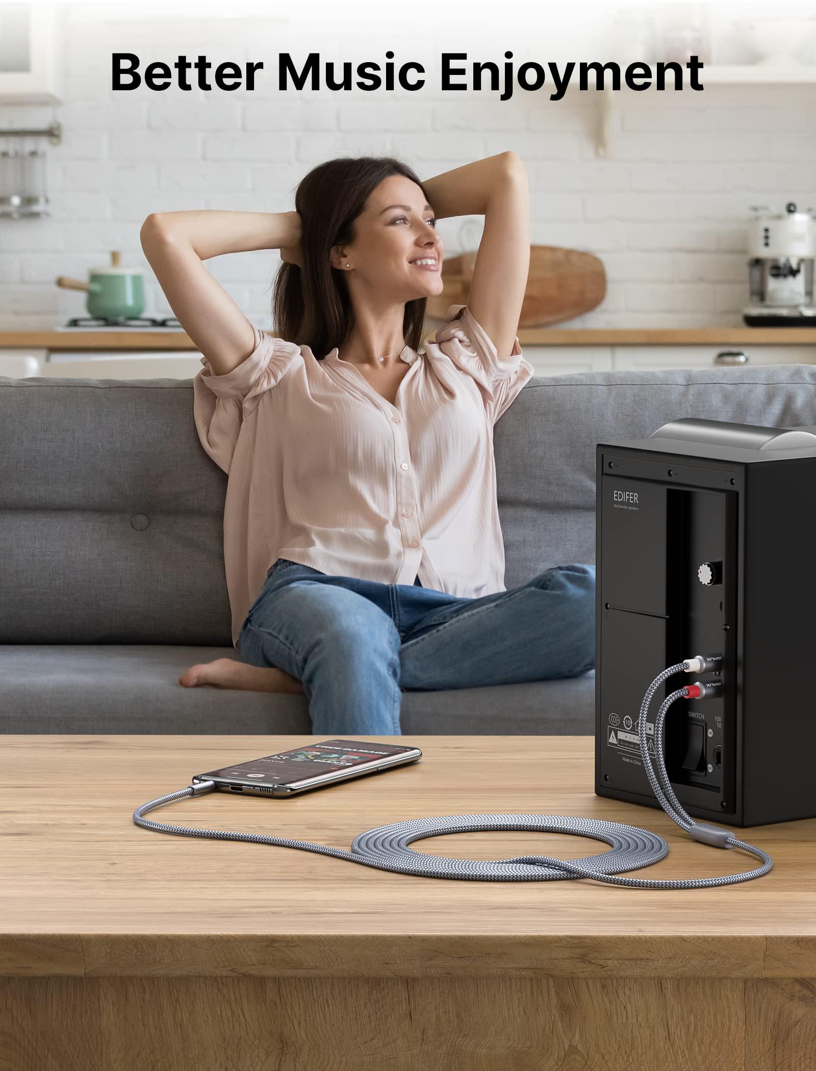 - Excellent Sound QualityJSAUX RCA to 3.5mm built with dual-shielding gold-plated connector and oxygen copper wire core making it less susceptible to outside interference, which ensure seamlessly transmit stereo audio for premium sound experience.