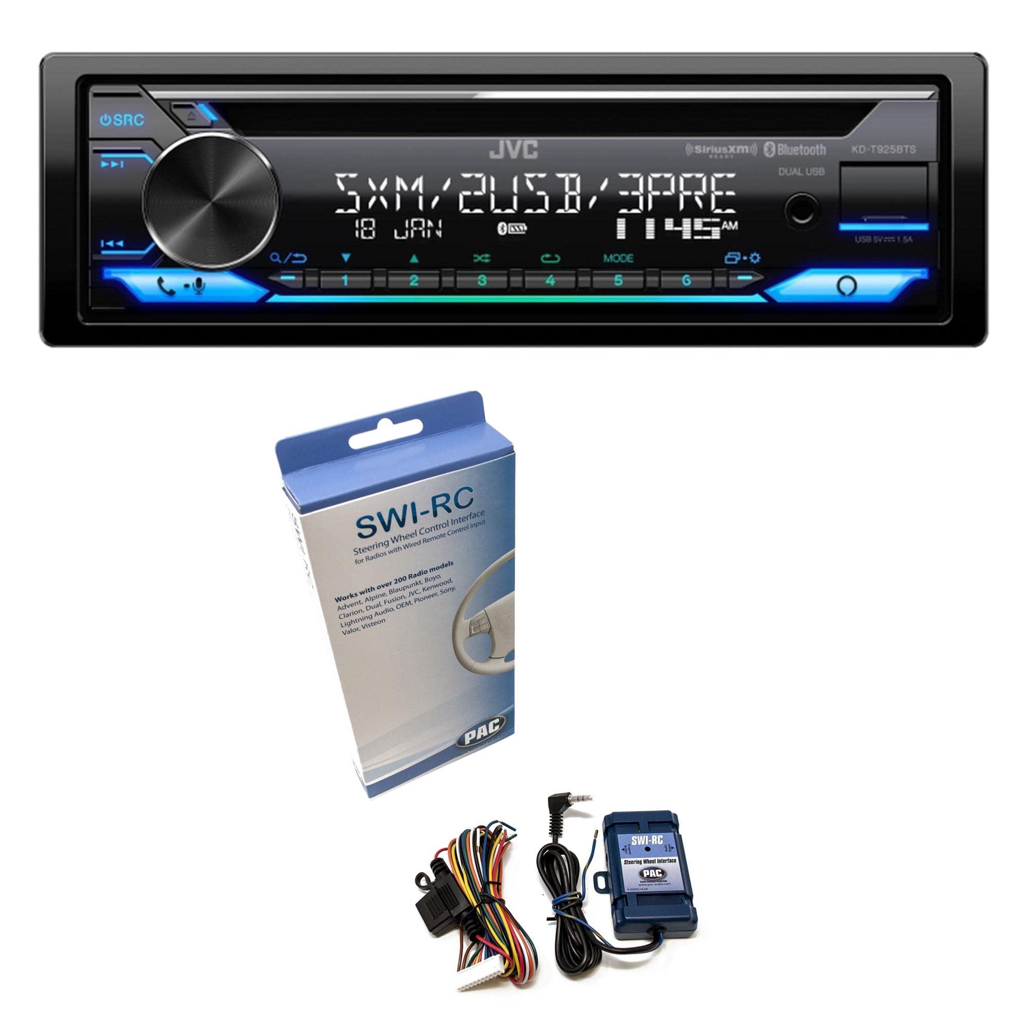 - Bundle includes: JVC KD-T925BTS CD Receiver featuring Bluetooth / Front & Rear Dual USB / Sirius XM / Amazon Alexa / 13-Band EQ / Variable-Color Illumination /JVC Remote App Compatibility, PAC Audio SWI-RC Steering Wheel Control Interface for compatible radios