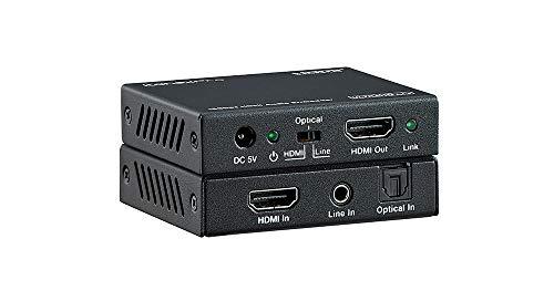- Embeds multi-channel optical (SPDIF) or Line analog audio to HDMI output.