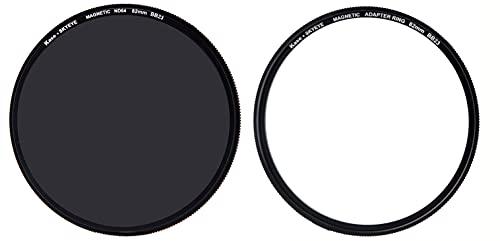 - 82mm Magnetic Adapter & Magnetic ND64 6 Stop 1.8 ND Filter. Adapter accepts 82mm Lens Caps and can be left on your lens.