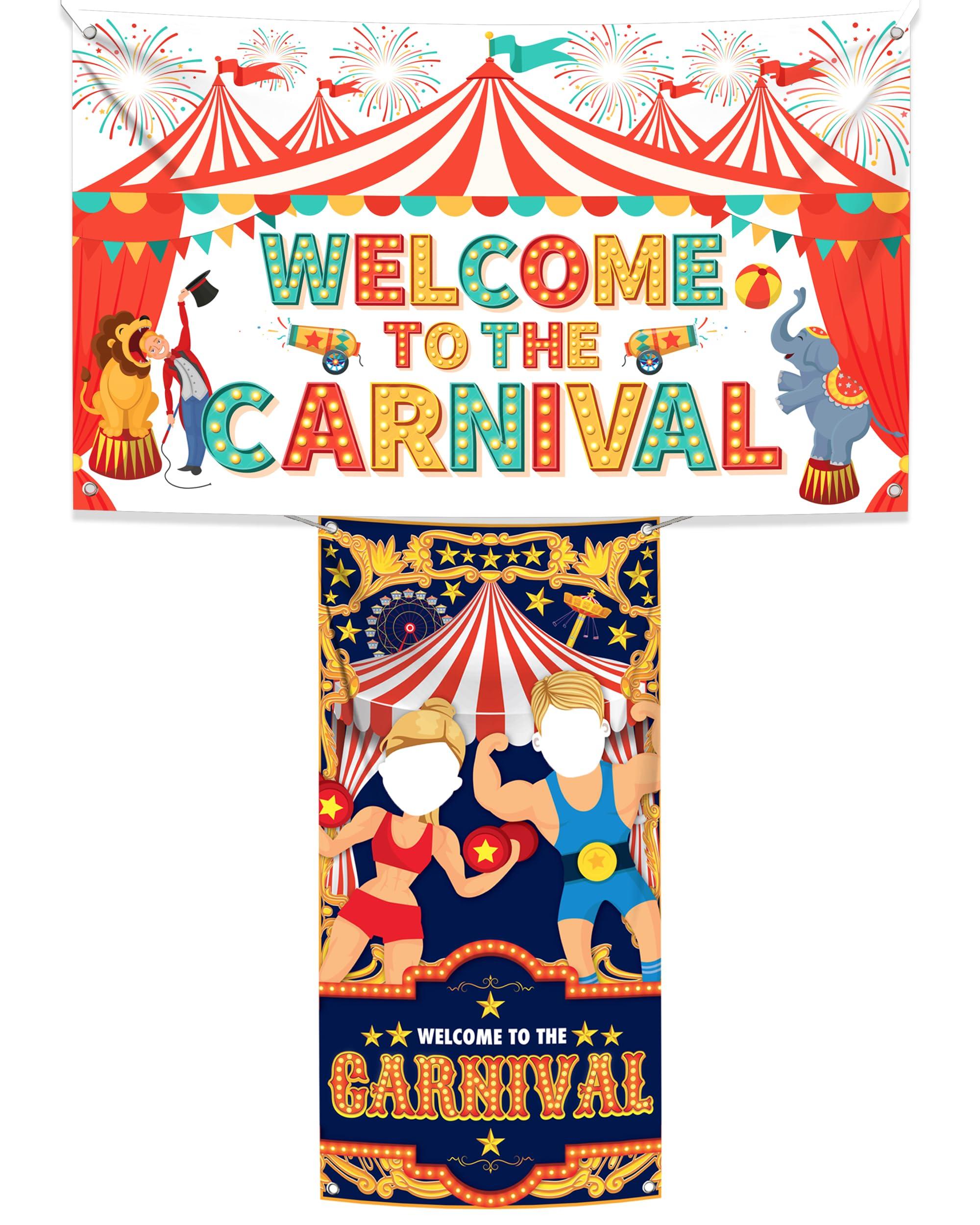 - LARGE SIZE | CARNIVAL PHOTO DOOR BANNER : These carnival photo booth backdrop great for circus theme party, amazing to boost atmosphere for carnival circus theme decorations. This was the wonderful addition to annual carnival circus party decorations cut out. This circus decorations for party will bring out the child in everyone enjoy this spirit with carnival party backdrop for children's party that comes in large size of 72x36 Inch.