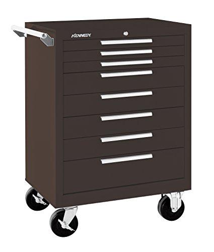 Kennedy K1800 : 18" Depth Kennedy K1800 Series is 18" in depth packed with all power and still fits into tight spaces Featuring industrial grade metal, stronger load capacity, and spacious, secure tool storage. These cabinets live up to expectations as best in class because they are built right and built for life - GUARANTEED. Maintenance Pro ProLine Industrial Durability comes standard so you get demanding jobs done time and time again. Drawers 18/20 gauge Frame 16/18 gauge Specs Drawers Range 5 - 10 Drawers Width Range 24" - 29.9" Depth Range 18" - 23.9" Height Range 36" - 41.9" Material St Load Capacity Range 1,400 - 2,499 Lbs. Number of Drawers 8 Width (Inch) 27 Depth (Inch) 18 Height (Inch) 39 Load Capacity (Lb.) 1400 Wheel Diameter (Inch) 5 Wheel Width (Inch) 2 Wheel/Caster Load Capacity (Lb.) 350 Includes Ball Bearing Slides 5" x 2" Casters Size A Number of Drawers 3 Size A Drawer Height (Inch) 2 Size A Drawer Depth (Inch) 16-1/2 Size A Drawer Width (Inch) 23 Size B Number of Drawers 4 Size B Drawer Height (Inch) 4 Size B Drawer Depth (Inch) 16-1/2 Size B Drawer Width (Inch) 23 Size C Number of Drawers 1 Size C Drawer Height (Inch) 6 Size C Drawer Depth (Inch) 16-1/2 Size C Drawer Width (Inch) 23
