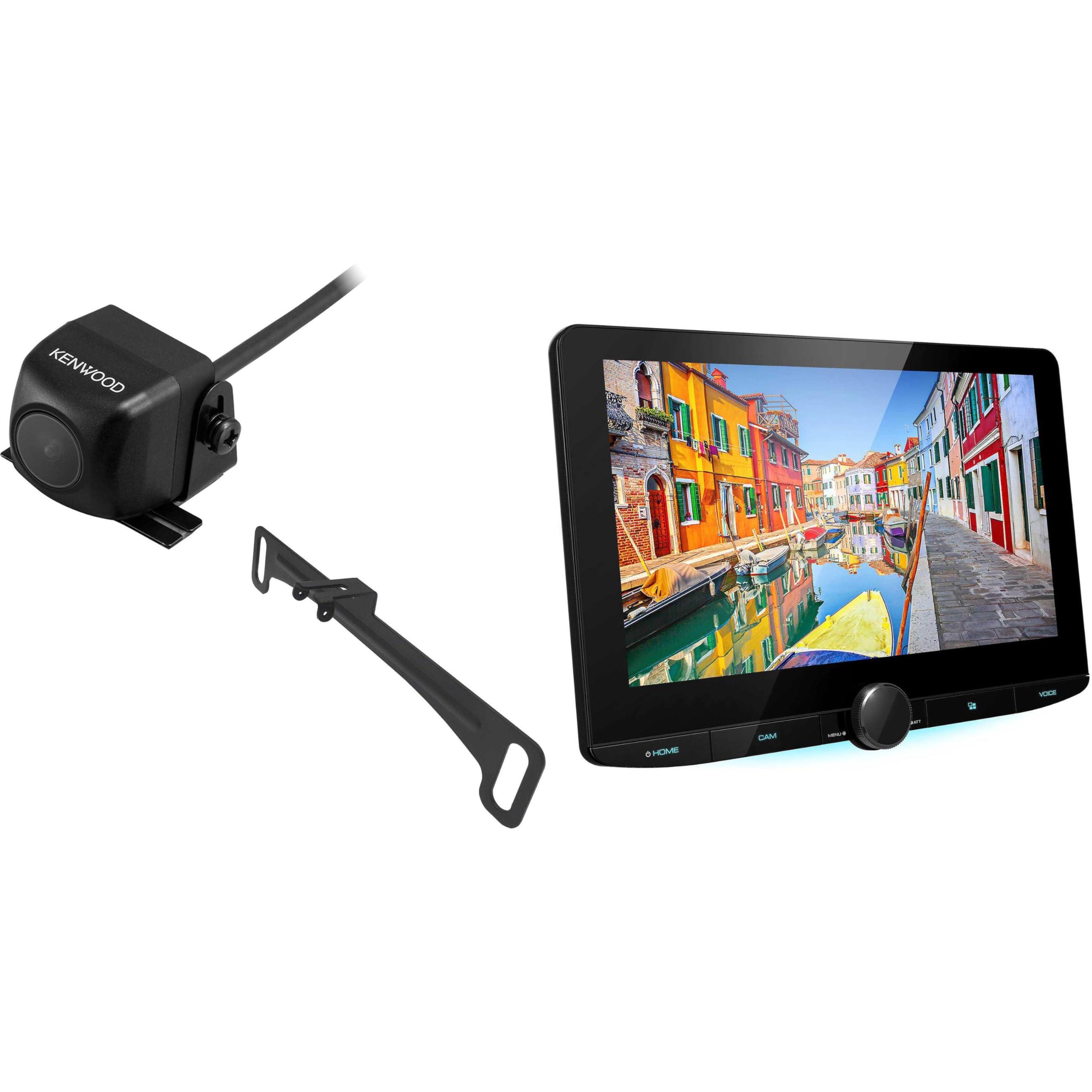 While factory floating displays often appear in late-model vehicles, Kenwood heaps on the feature-packed aftermarket advantages in its DMX1037S digital multimedia receiver. You'll easily see all your media info and controls with its huge 10.1 high-definition display. You also get all the latest smartphone interfaces such as Bluetooth, Apple CarPlay, and Android Auto, and you can also customize the display to show travel aids you need most, such as the weather and navigation. And yes, there's still a clock and a volume knob, too.