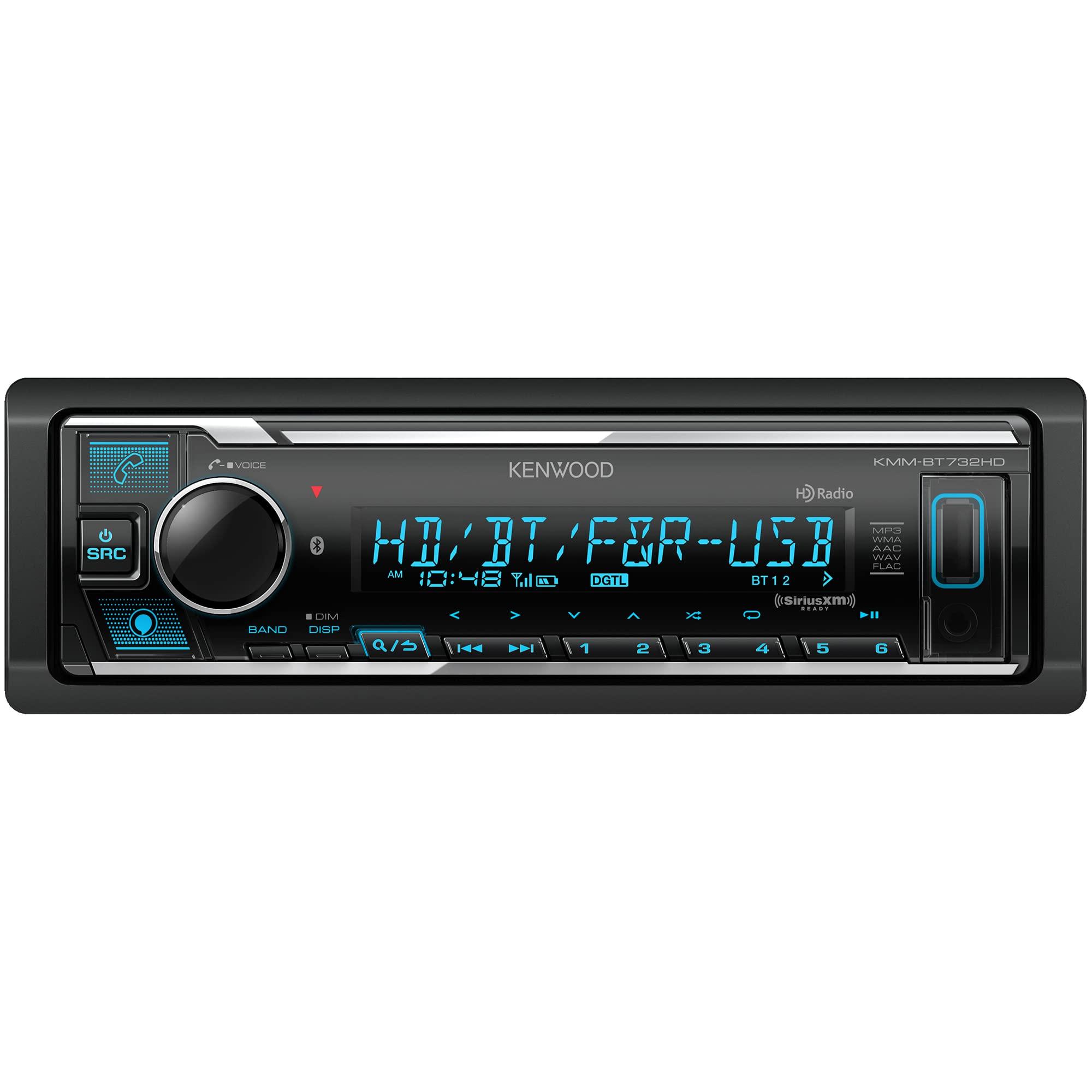 KMM-BT732HD KENWOOD Digital Media Car Stereo has Built-in Alexa gives you the voice control you love over a host of features. A built-in HD Radio tuner provides better sound quality from your participating local radio stations than you've ever had. Calls will also be easier thanks to built-in Bluetooth, and two-phone pairing is perfect if you share your vehicle with another driver. Features - 255 Segment 1.5 Line Text Display Amazon Alexa Ready Built-in HD Radio Tuner Dual USB Variable Color Illumination 13Band EQ + DTA Short Chassis 3 Preouts 4.0V USB - USB: USB 1.1 / 2.0 High Speed File System: FAT12 / 16 / 32 Maximum Supply: current DC5V(DC logo) 1.5A Frequency Response: 20Hz to 20kHz(1dB) S/N Ratio (dB): 98dB(1kHz) Dynamic Range: 93dB Channel Separation: 90dB MP3 Decode: Compliant with MPEG-1/2 Audio Layer-3 AAC Decode: AAC-LC ".aac", ".m4a" files WAV Decode: Linear-PCM FLAC Decode: FLAC file (Up to 96kHz/24bit) AUX Input - Frequency Response: 20Hz to 20kHz 3dB Input Maximum Voltage: 1000mV Input Impedance: 30k