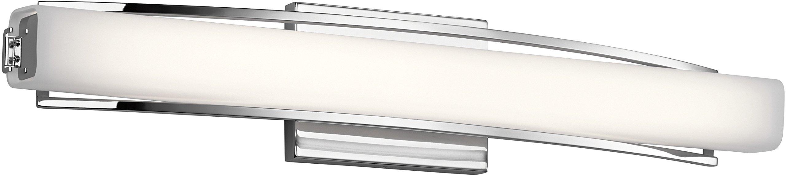 - This LED vanity light is perfect above or on each side of a vanity mirror in a bathroom or powder room.