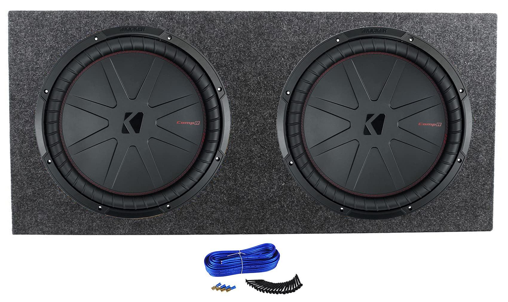 - Package Includes: (2) KICKER 48CWR152 CompR 1600 Watt 15" Subwoofer DVC 2-ohm Car Sub CWR15-2 COMPR15, (1) Rockville RD15 Dual 15 2.1 cu.ft. 3/4" MDF Sealed Car Sub Enclosure Box USA, (1) Dual Sub Box Enclosure Installation Kit: Speaker Wire, Screws, Spade Terminals