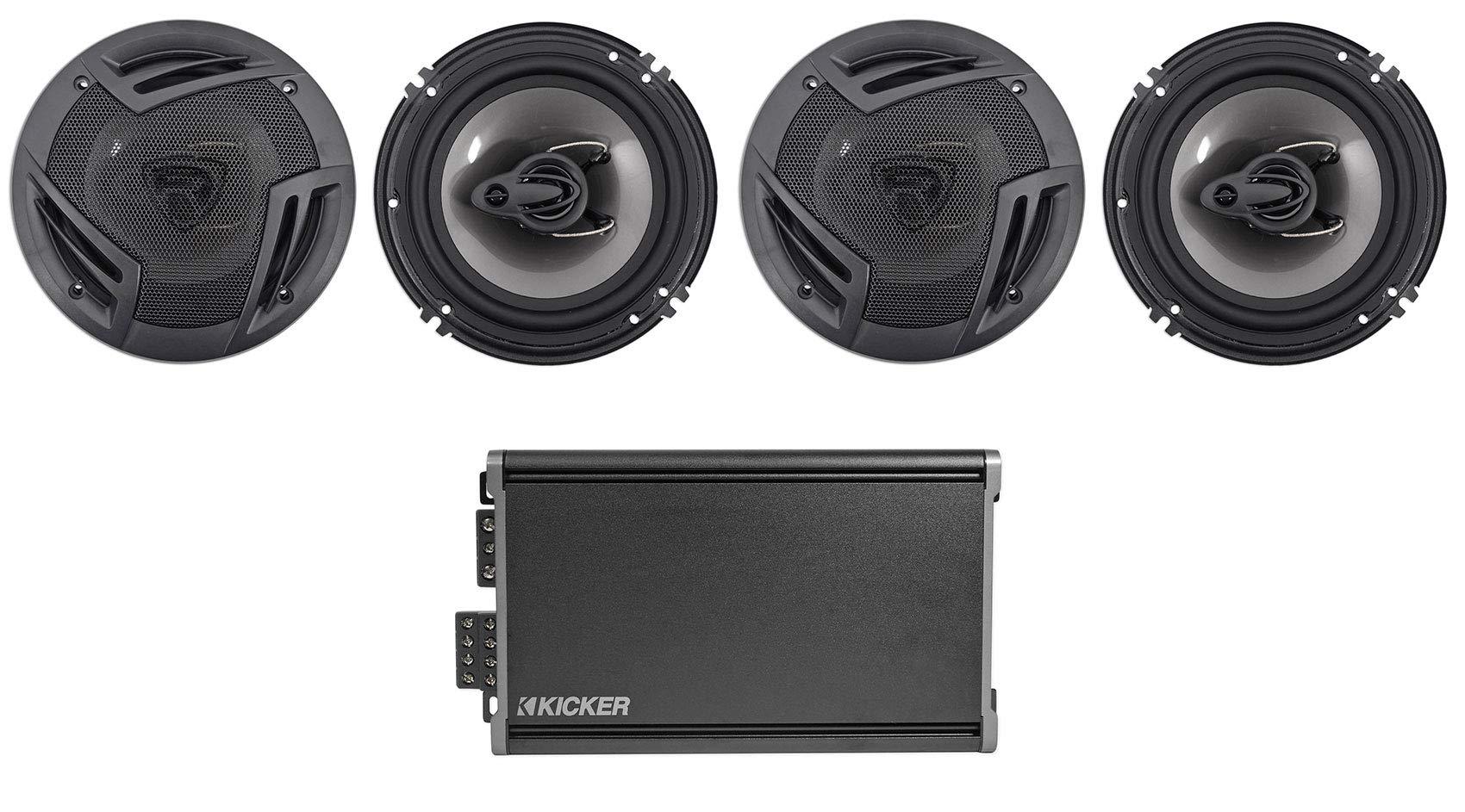 - Package Includes: (1) Kicker 46CXA3604T CXA360.4 360w RMS 4-Channel Car Audio Amplifier Class A/B Amp, (2) Pair Rockville RV6.3A 6.5" 3-Way Car Speakers 750 Watts/140 Watts RMS CEA Rated