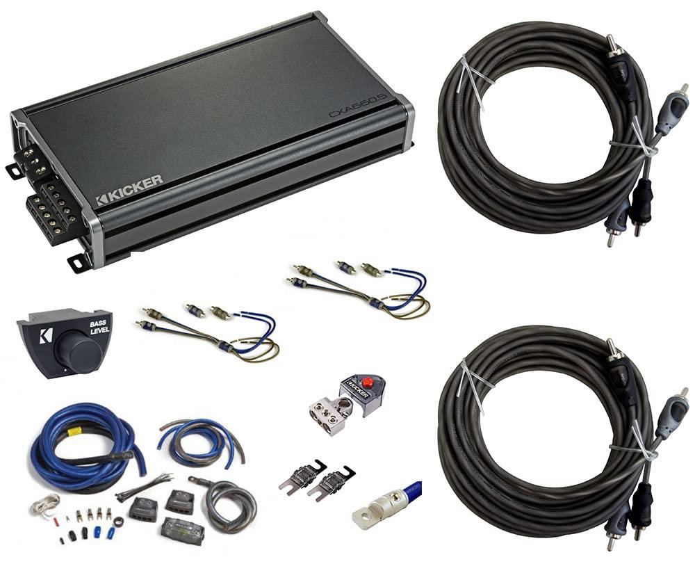 This Package Includes the Following Items: 1 x Kicker 46CXA6605 Car Audio 5 Channel Amp Speaker & Sub 1200W Amplifier CXA660.5 1 x Kicker 46CXARC Car Amplifier CXA CX PXA Amp Bass Remote Control Knob 1 x Kicker 46PKD1 Car Audio 1/0 Gauge OFC Dual Amp Amplifier Install Kit PKD1 New 2 x HA-RCA17 Car Audio 2 Channel Stereo 17 Foot Twisted Pair RCA Cable 2 x Kicker 46KISL Car Audio Amp Amplifier Speaker Wire to 2 Channel RCA Adapter KISL 1 x Kicker 46BT4 Car Audio Positive - Negative Power Wire Cable Battery Terminal BT4 1 x Kicker 46AFS200 Car Audio AFL (Mini ANL Fuses) 200 Amp Fuse 2 Pack Pair AFS200 1 x HA-RT0 Car Stereo Power or Ground 1/0 Gauge 5/16" Ring Terminal - Nickel