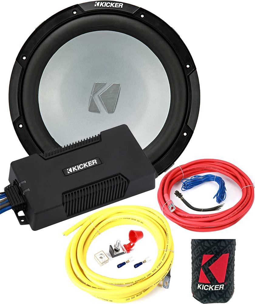 KICKER Subwoofer and Amp Package of 3 Items - 12" KM 350 Watt Sub, Class D Monoblock Amplifier and 8AWG Power Wiring Kit
