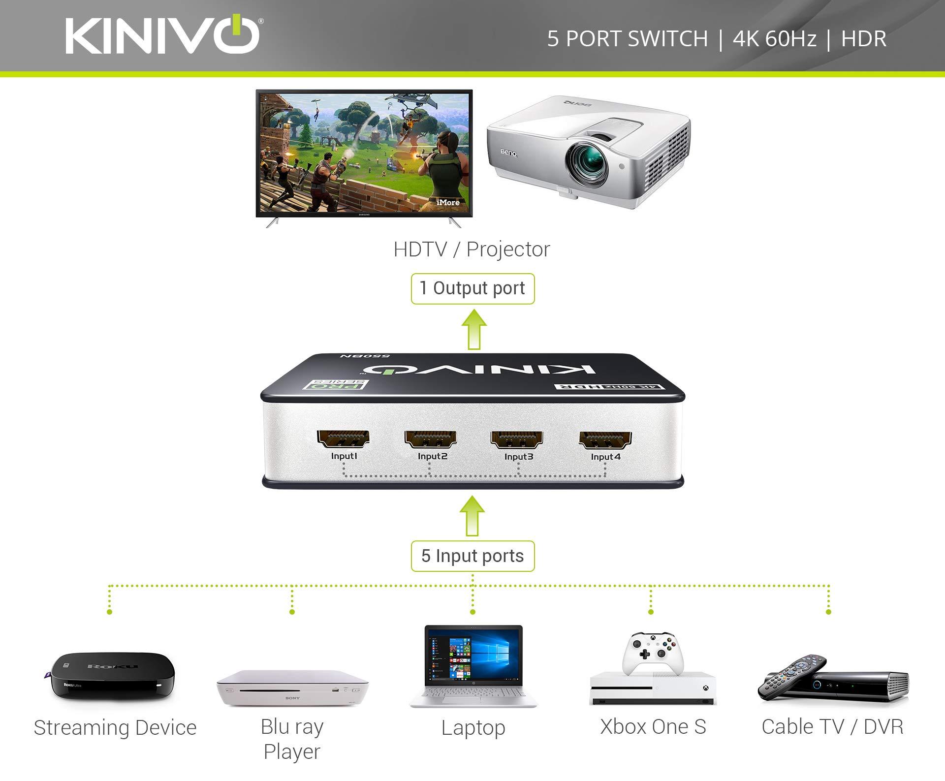 - Connect five HDMI input devices (e.g. gaming console, DVD player, streaming devices etc..) to a single output display (HDTV) helping reduce clutter from wires being fed into your HDTV