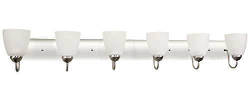 - [CHIC MODERN DESIGN] The 6-light vanity light showcases a classy design, featuring a gorgeous brushed nickel finish that instantly upgrade your bathroom or powder room. This bathroom light's curved gooseneck arms and tapered alabaster glass shades emit a bright glow, making it a prime choice among interior designers and builders for both new construction and remodel projects