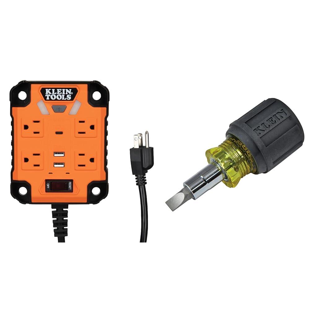 Klein Tools 29601 Magnetic Power Strip with Surge Protector, Extension Cord, 4 Outlets, 3 USB Ports, 5-Foot Cord, Power Supply Box with Light, PowerBox 1, Heavy Duty