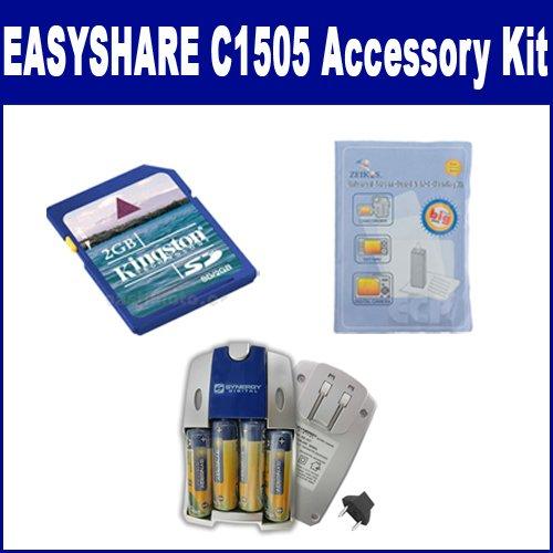 Kodak EASYSHARE C1505 Digital Camera Accessory Kit includes the following items: 1) AA and AAA NiMH Quick Battery Charger - Includes 4-pack of 2800mAh Rechargeable AA Ni-MH Batteries - 110/220V 2) 2GB Standard Secure Digital (SD) Memory Card 3) 5 Piece Digital Camera/Camcorder Deluxe Cleaning Kit