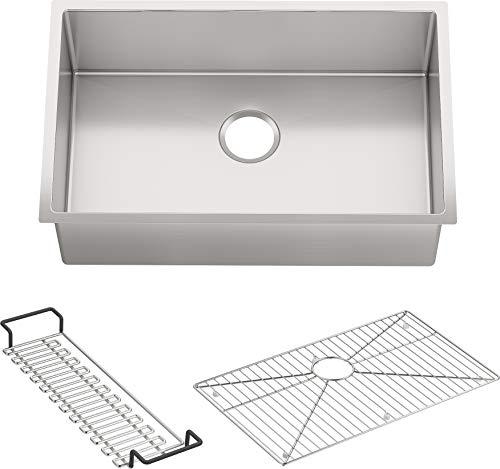 - ACCESSORIES INCLUDED: Includes K-6429 dishcloth bar/utility shelf and K-5408 bottom sink rack