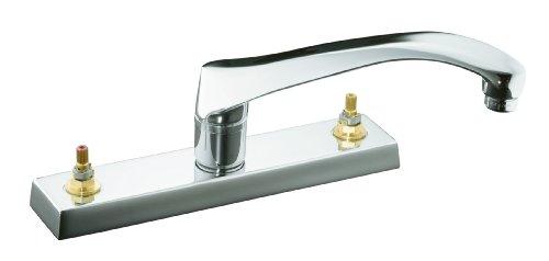 K-7825-K-CP Features: -Kitchen sink faucet.-Choose from lever, cross, square, or wristblade handle styles.-One-piece ceramic valve resists debris and hard water buildup.-Ergonomic handle rotation provides on/off water control.-For installation on 8" centers.-Made in USA. Options: -Low-flow aerator option available. Construction: -Solid brass construction ensures years of reliable performance. Color/Finish: -Polished chrome finish. Collection: -Triton collection.