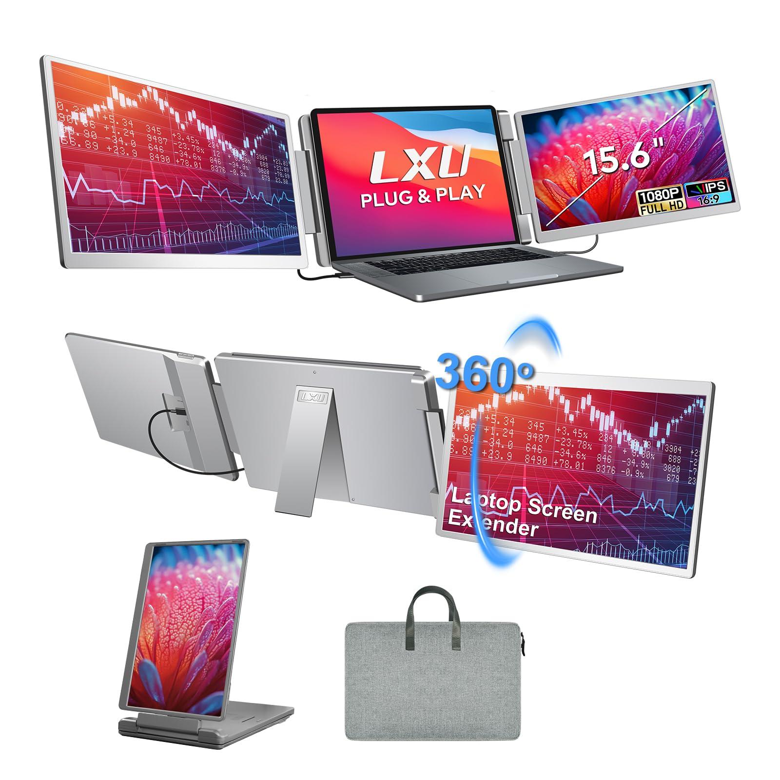 - [ Maximize Your Productivity ] : LXU dual screen monitor for laptop screen extender allows you to handle multitasking on triple screen simultaneously, boost your work efficient by up to 300%. Perfect for people who work on the go, remote workers, Student, Programmer, Teacher, Graphic Desiger, Software Develpoer, etc.