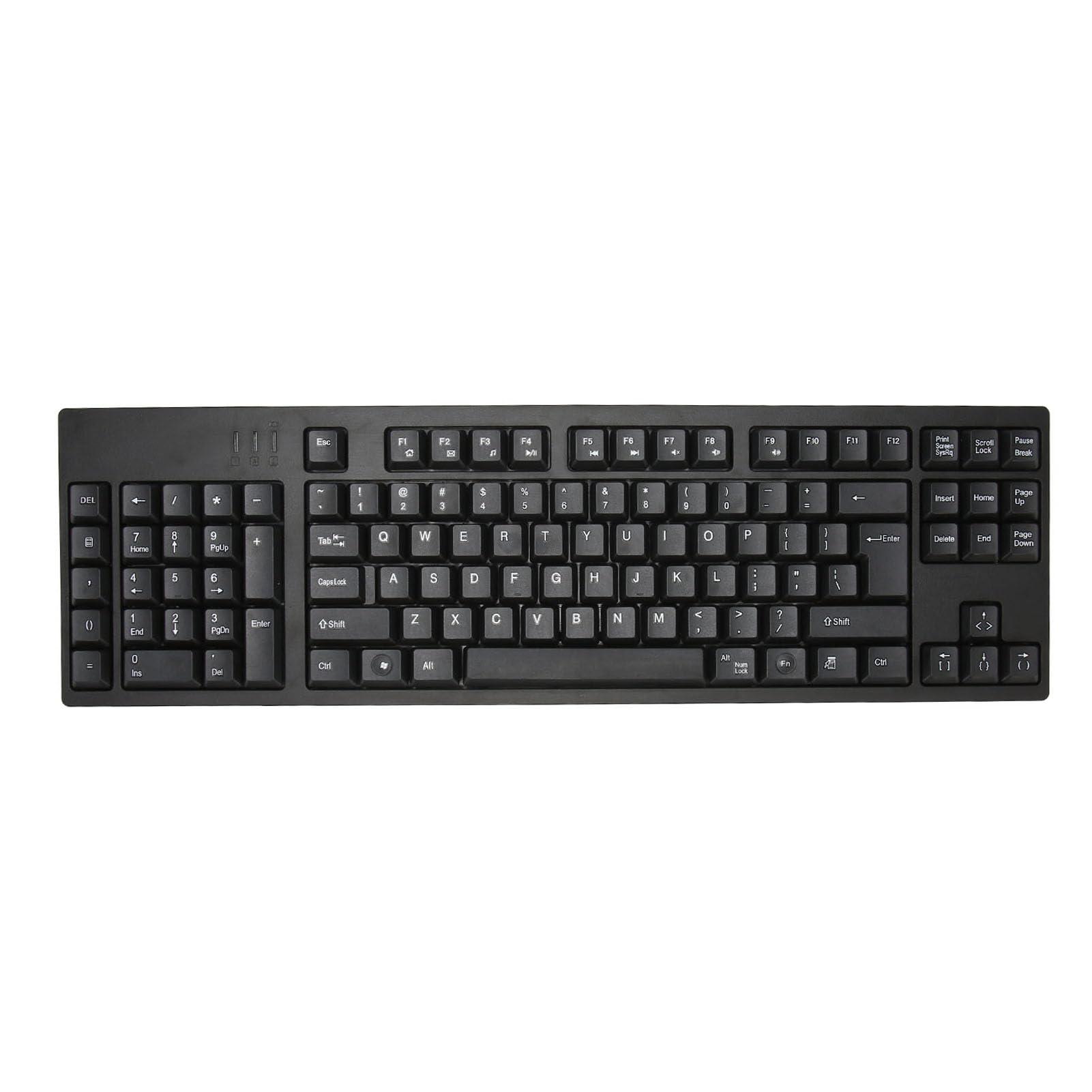 - 109 KEYS COMPUTER KEYBOARDThis black gaming keyboard has 109 keys, left numpad design allows left hand to operate numeric keypad while keeping right hand for mouse . The keys of the keyboard is responsive and smooth, which brings you a comfortable typing experience and relieves hand fatigue. to every keystroke, improve work efficiency.