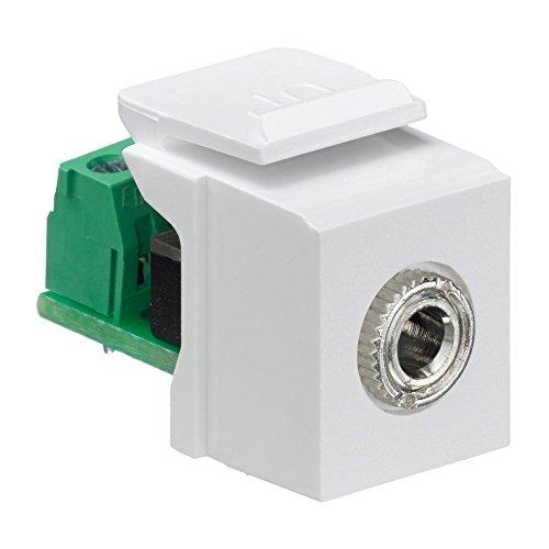 Leviton's extensive line of snap-in modules allows complete field configurability for the installer. Leviton QuickPort housings, such as wall plates, MOS housings and modular furniture faceplates, can be configured with a custom combination of QuickPort modules which easily snap in or out of ports. QuickPort Snap-In Module with 3.5Mmm Stereo Jack, Female To Screw Terminal, White.