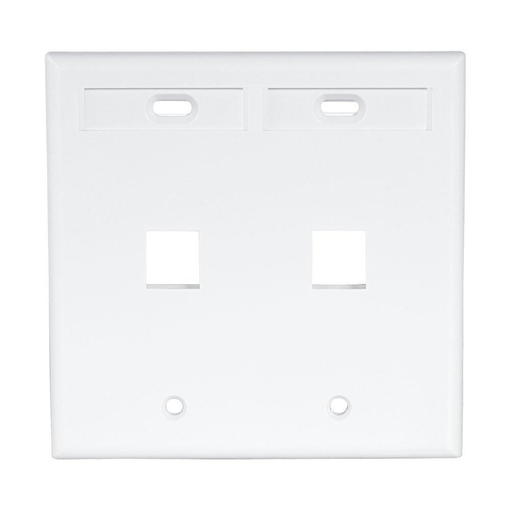 Leviton single-gang and dual-gang wallplates accept QuickPort snap-in Modules to support Multimedia station applications with 1, 2, 3, 4, 6, 8, and 12 ports. Use where port designation windows in a single-gang or dual-gang economical Flush-mount housing is desired. Available in five colors: White, light almond, grey, ivory, and black.