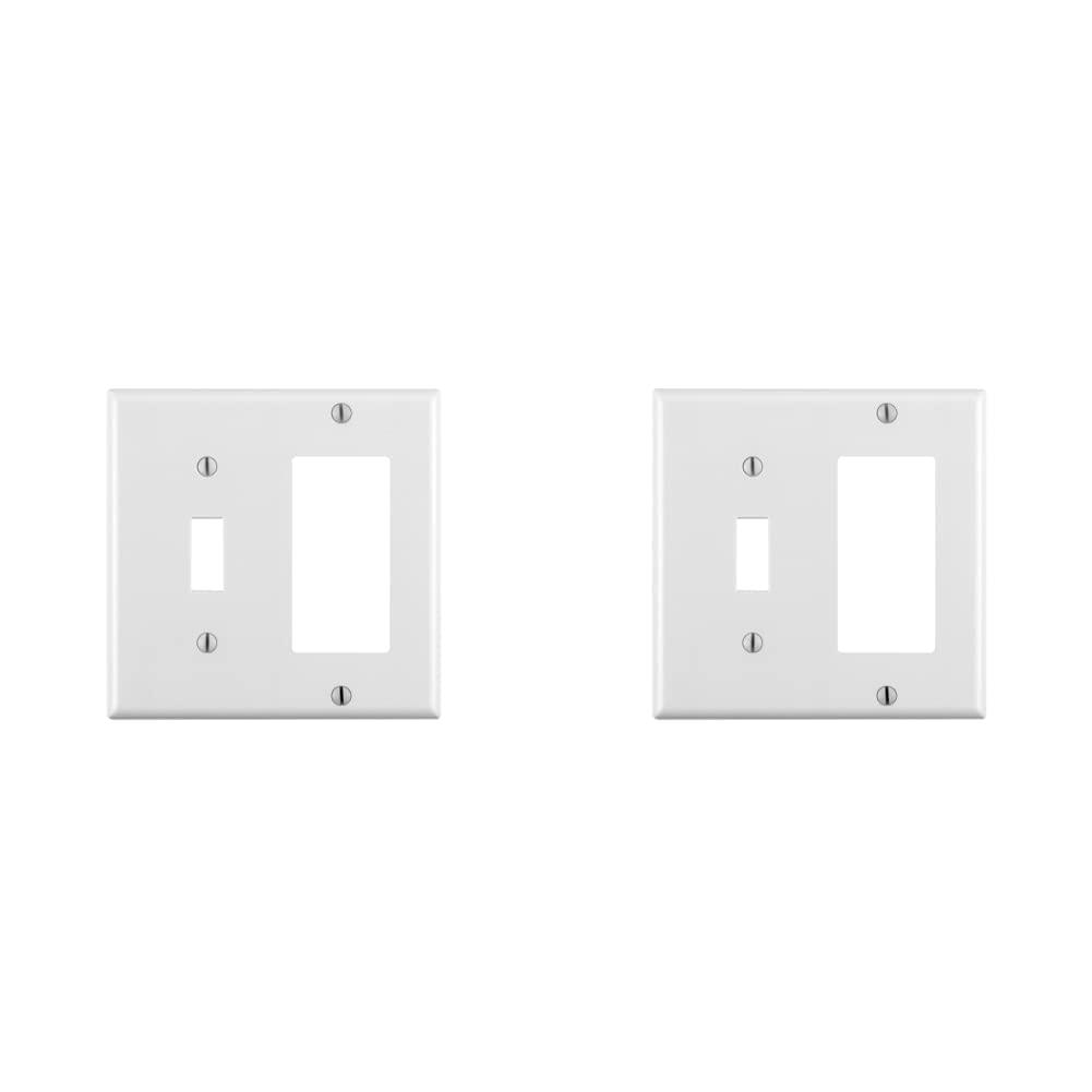 Leviton 80405-W 2-Gang 1-Toggle 1-Decora/GFCI Device Combination Wallplate, Standard Size, Thermoset, Device Mount, White (Pack of 2)