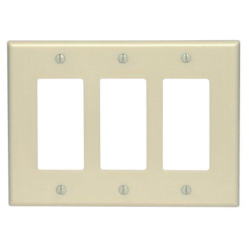 Leviton Decora (R) brand designer Wallplates available in a wide spectrum of colors and styles can add subtle elegance to any home. Sleek, versatile and convenient, they also come in a midway size that gives even greater coverage, and can hide unsightly wall surface irregularities. All Leviton Decorative Wallplates can stand up to heavy use while coordinating perfectly with paint or wall coverings. Think of them as the finishing touch to giving a home its signature look. 3-Gang Decora/GFCI Device Decora Wallplate, Midway Size, Thermoset, Device Mount, Ivory. Decora is a registered trademark of Leviton Mfg. Co., Inc.