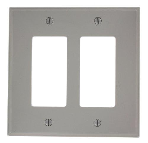 THERMOPLASTIC/NYLON MATERIAL; SMOOTH FINISH; GRAY COLOR; (2) DECORA/GFCI RECEPTACLE CONFIGURATION; 2 GANG(S); MIDWAY DESIGNATED SIZE; DECORA[R] BRAND; APPROVAL UL, CSA; OVERALL DIMENSION 4.94 INCH W X 4.88 INCH H X 0.25 INCH THK; MOUNTING TYPE DEVICE