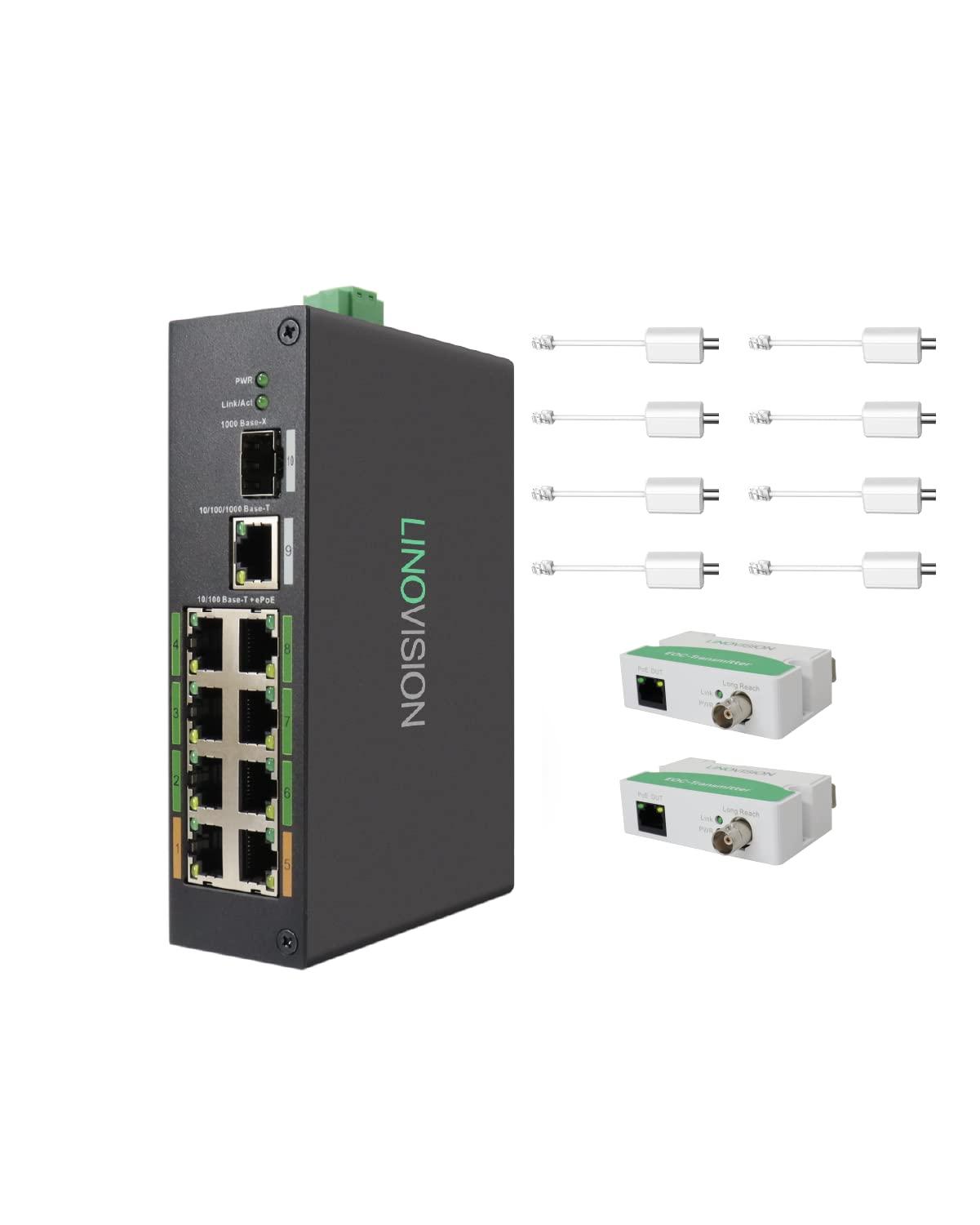 - SIMPLIFIED WIRINGInstead of using 6 pairs of EOC Converters & 1 PoE switch, one EOC Switch can provide the same functions. It provides more-simplified cabling and more-stable performance. While upgrading your analog surveillance system you can add extra IP cameras with UTP (Cat5E/Cat6) cables