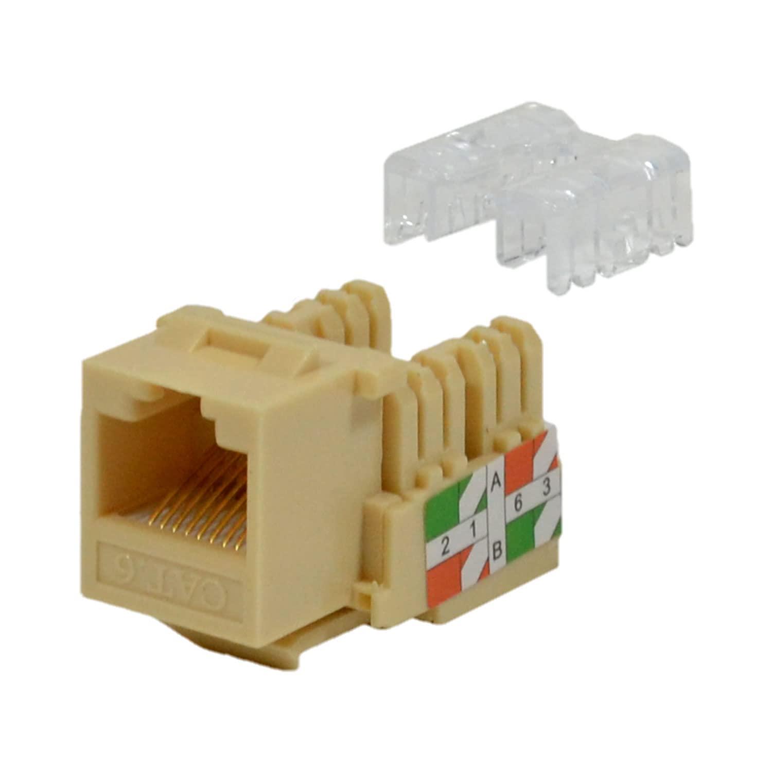 - [Dual-Color & Dust-Proof] This female keystone jack has a coded labeling made for both 568A & 568B (258A) wiring schemes. Our Cat6 jack comes with a dust-proof cap, which helps to prolong the useful life of your installation.