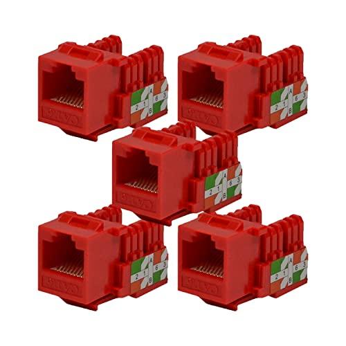 LOGICO Cat6 Keystone Jacks are a high-quality, professional-grade solution to all your networking needs. We only incorporate the best materials for our cat 6 rj45 connector box. The housing PC-ABS material we use, is the same as the one you will find on top of the notch medical devices and automotive industry. Each jack is made with High-impact Keystone shell housing to withstand knocks and bumps and comes with a keystone jack cover to protect your installation from dust. Whether you're planning an Ethernet home installation or patching into a big corporate network project, our LOGICO Cat6 Keystone Jacks Red colored are the perfect solution for any building or remodeling project that needs reliable, trustworthy RJ45 wall ethernet jacks. Keystone jacks are snap in modules used to mount low voltage electrical connectors into a keystone wall plate, patch panel, face plate or surface mount box. Whats on the package? 5 pieces LOGICO Cat6 RJ45 Connectors Keystone Jack with Dust Cap, Red. Our LOGICO RJ45 Connector is designed to be used under rough usage conditions. These Keystone jacks allow for a clean, organized, and easy connection to help evade cable cluster or visible connections. Use it together with our All in one, 8 wires termination & cutting tool, special for our LOGICO rj45 keystone jack or our 110 punch down tool to make the job much easier for you to finish fast, and create neat and clean installations.
