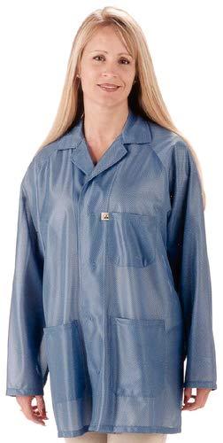 Jackets are 87% polyester and 13% conductive BASF Resistat fiber, which has a static decay rate of 5000V to 500V in less than 0.1 seconds Hip-length jackets feature a lapel collar and three pockets. They meet ANSI/ESD STM2.1-1997 requirements. Ordering information: Jackets are also available grounded and in white and burgundy; contact your VWR sales representative for information.