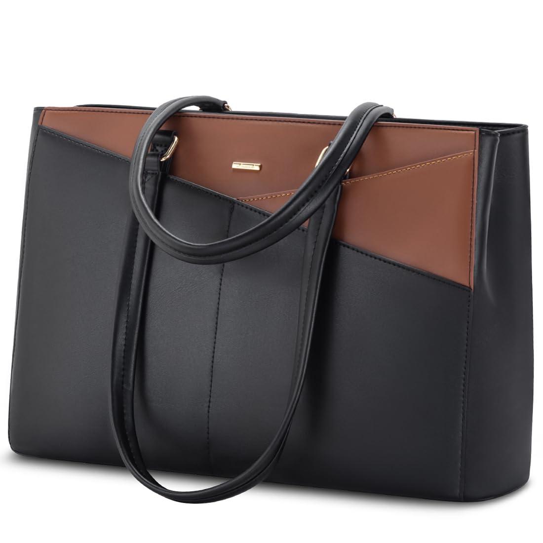 LOVEVOOK LOVEVOOK Laptop Tote Bag for Women, Office Work Bag Briefcase fit for 15.6 inch Laptop, Large Capacity Teacher Computer Bag Handbag Black/Brown