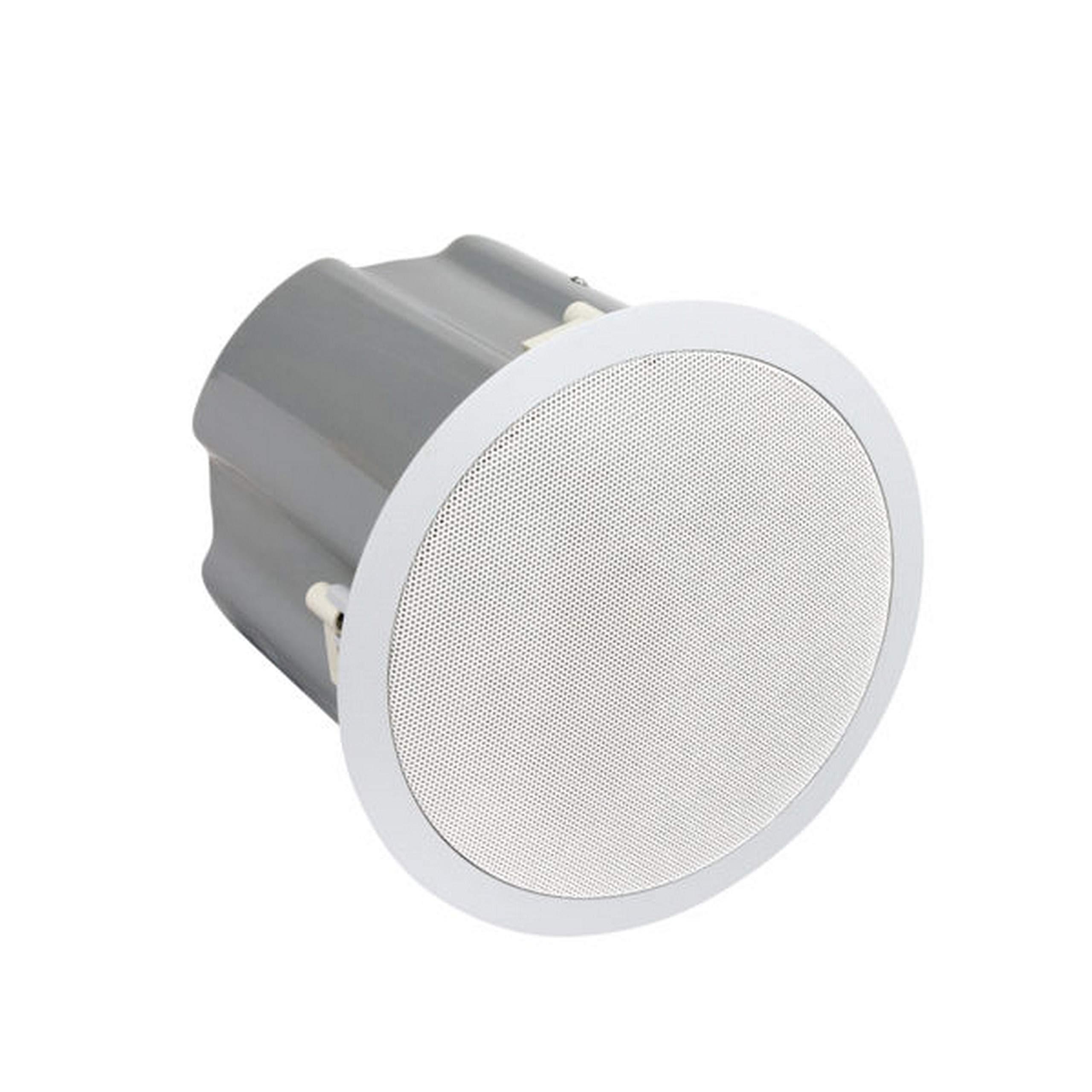 Model ES-52T produces excellent intelligibility for speech and full-frequency response for music making it ideal for retail, commercial, industrial, institutional, and residential applications. This self-contained in-ceiling or in-wall speaker system with 5-1/4 inch coaxial driver has a high-frequency Mylar tweeter with acoustic lens to provide the kind of crisp, high-frequency response expected from high quality coaxial speakers