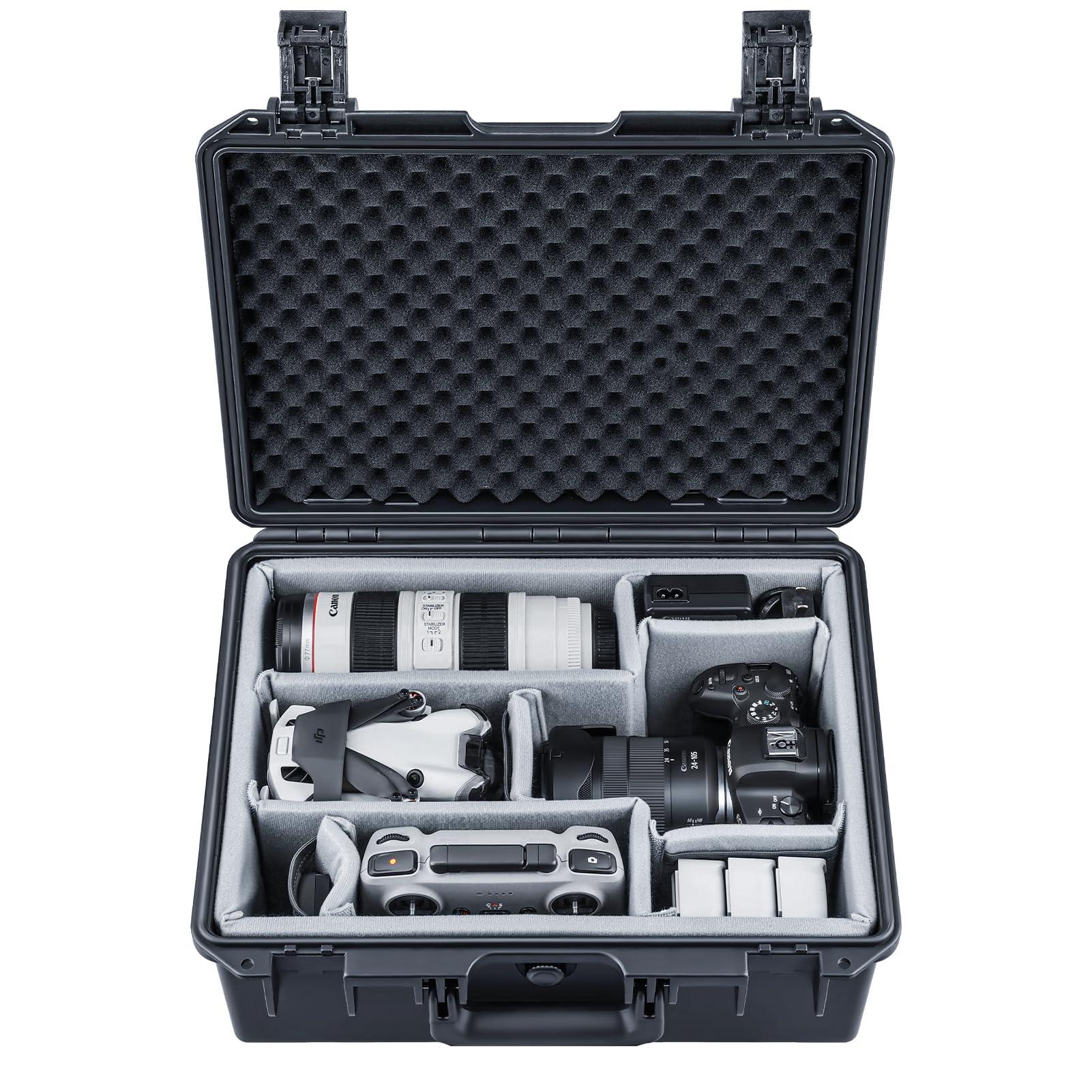 - VERSATILE STORAGE - Dividers allow customizable configuration for storage of any combinations of DSLR/mirrorless cameras, lenses, drones, remotes and more accessories
