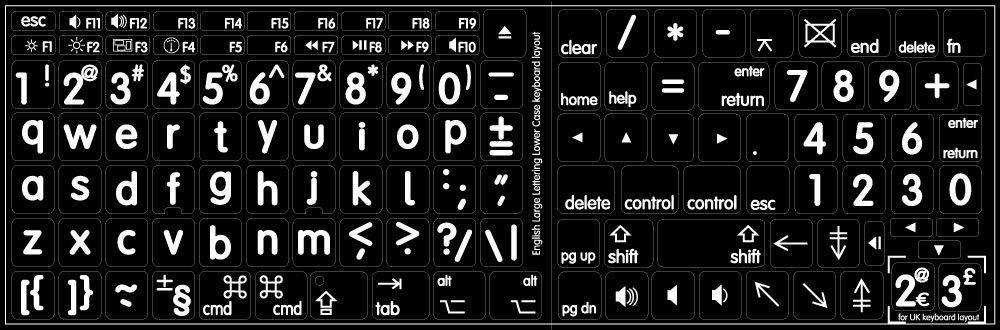 High-quality stickers for different keyboards Desktop, Laptop and Notebook such as: Apple, Macintosh Computers, Power Mac, Apple iBook, Apple PowerBook, MacBookPro, AirBook, Apple iMac etc. Stickers are made of high-quality non-transparent (white or black) - matt vinyl, thickness - 80mkn, typographical method. Applying stickers on you keyboard properly once, and you can be aware that letters will stay for ever. LARGE LETTERING Keyboard Stickers designed with care of people. LARGE LETTERING Keyboard Stickers designed to be used by children and their parents who want their young explorers to learn more and faster, people with poor vision, having difficulties reading small letters and others with certain health conditions. LARGE LETTERING Keyboard Stickers are widely used at schools, libraries, long term care facilities as well as special need departments and organizations. Applying possess doesn't take more than 10-15min. And you can immediately enjoy your brand-new English Large Lettering keyboard. * Ideal for any age group * People who have hard time seeing standard keyboard characters * Easy to see even in poor lighting * Recognized and approved by ophthalmologist and therapists all over the world What you're offered now is high-quality stickers, intended to simplify you work and enjoy it while doing it on computer. Discover the World of perfection and simplicity with our Product. OUR MOTTO IS - QUALITY! The product listed above is copyrighted, has been manufactured and distributed by Royal Galaxy Ltd. Usage of the images posted, distribution or resale has NOT been authorized by Royal Galaxy Ltd, and is in direct violation of its written terms. Federal law provides severe civil and criminal penalties for the unauthorized usage, distribution or resale of copyrighted product, its listings with all imaged posted. For all requests regarding usage of images of this product, its distribution and resale, please contact us by email.