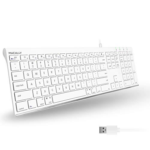 - ULTIMATE WIRED KEYBOARD: Enhance your workplace with both style and increased productivity. This full size keyboard has a height less than a penny and will look great on your desk.