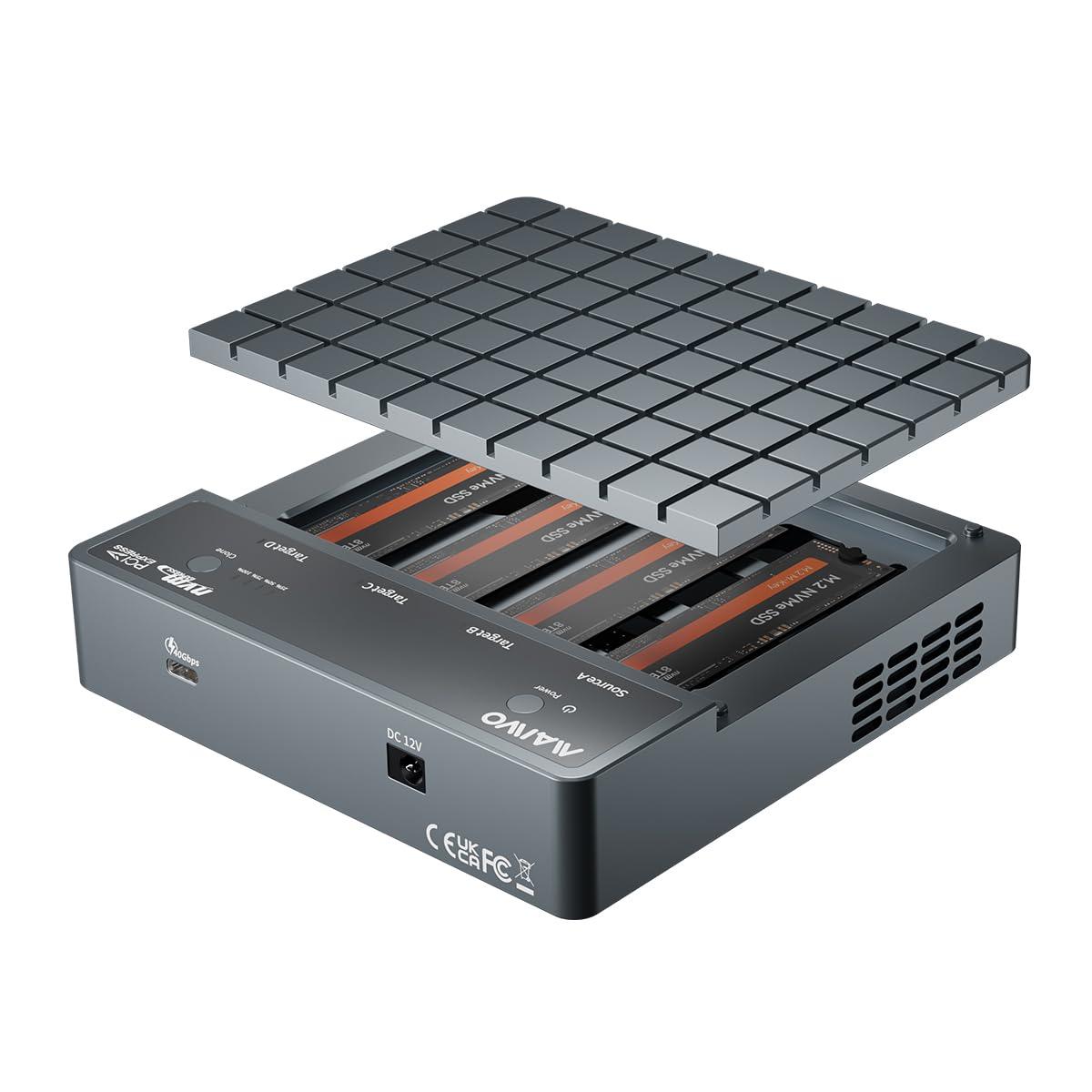 - Excellent Heat DissipationThis nvme cloner have multiple cooling methods whcih can improve your work efficiency: aluminum alloy body, magnetic aluminum case, built-in cooling fan, heat dissipation holes, aluminum thermal pads and silicone thermal pads.