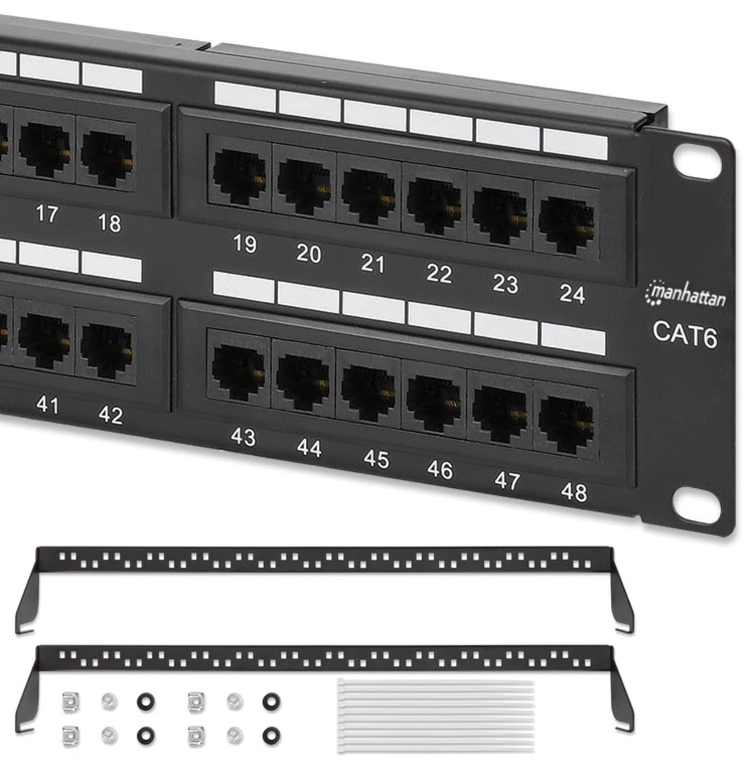 The Manhattan Rackmount Patch Panel helps maintain the integrity of your data and enables you to quickly change the port assignment of any piece of equipment that's attached to your network. This patch panel offers convenient access to ports and can be mounted to any 19" rack. With Cat6 performance that complies with the ANSI/TIA/EIA 568 B.2-1 standard and supporting unshielded Cat6 cable, this patch panel meets current industry standards for enhanced support of what's possible in your network. The mountable support bar and included cable ties allow clean and organized cable management.