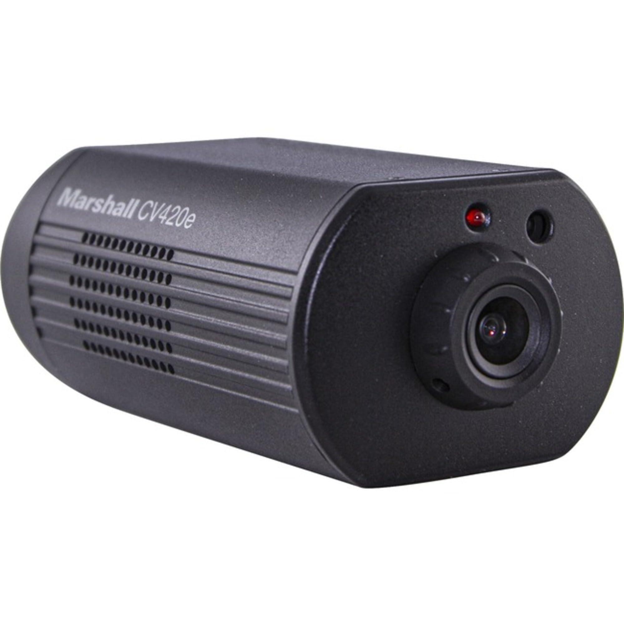 Compact UHD Camera with large 1/1.8 4K sensor with 9.2 megapixel and ePTZ maneuverable functionality built into a durable compact size. Featuring easy one-cable IP setup, USB3.0 connectivity and HDMI simultaneous output. Ultra-wide 100-degree AOV with no curvature option wide open and ability to ePTZ an HD image within the 4K sensor. Crystal Clear 4K Images with wide AOV Incorporating a 1/1.8 4K sensor with over 9 million pixels delivers unparalleled clarity and performance even in challenging light conditions. Starting at a 100 angle-of-view CV420e delivers an ultra-wide perspective with no curvature. Flexible Workflow Options The flexibility to stream content over IP (HEVC) with an HDMI simultaneous output, or USB3.0 with a simultaneous HDMI output offers flexibility for media streaming and collaboration from one camera. Stream live to YouTube, Livestream, Facebook (Meta), or Twitch while capturing local HDMI content and workflow manipulation. ePTZ with digital pan, tilt and zoom Utilizing a large Sony 1/1.8 4K sensor opens optional ePTZ maneuverability of HD images within the 4K sensor space. Controllable remotely via VMS, GUI, or Visca over IP command from 3rd party control decks as well as UVC commands over USB. Hardware control from Marshall VS-PTC-IP controller via IP and locally by IR remote included in box. Durable, Flexible, Powerful The CV420e is built into a compact and durable body with rear I/O protection wings. Marshall CVM-5 monitor mount and desktop stand is included (free) as well as IR remote for local setup and control. Compact, durable and powerful tool for a wide variety of streaming applications.