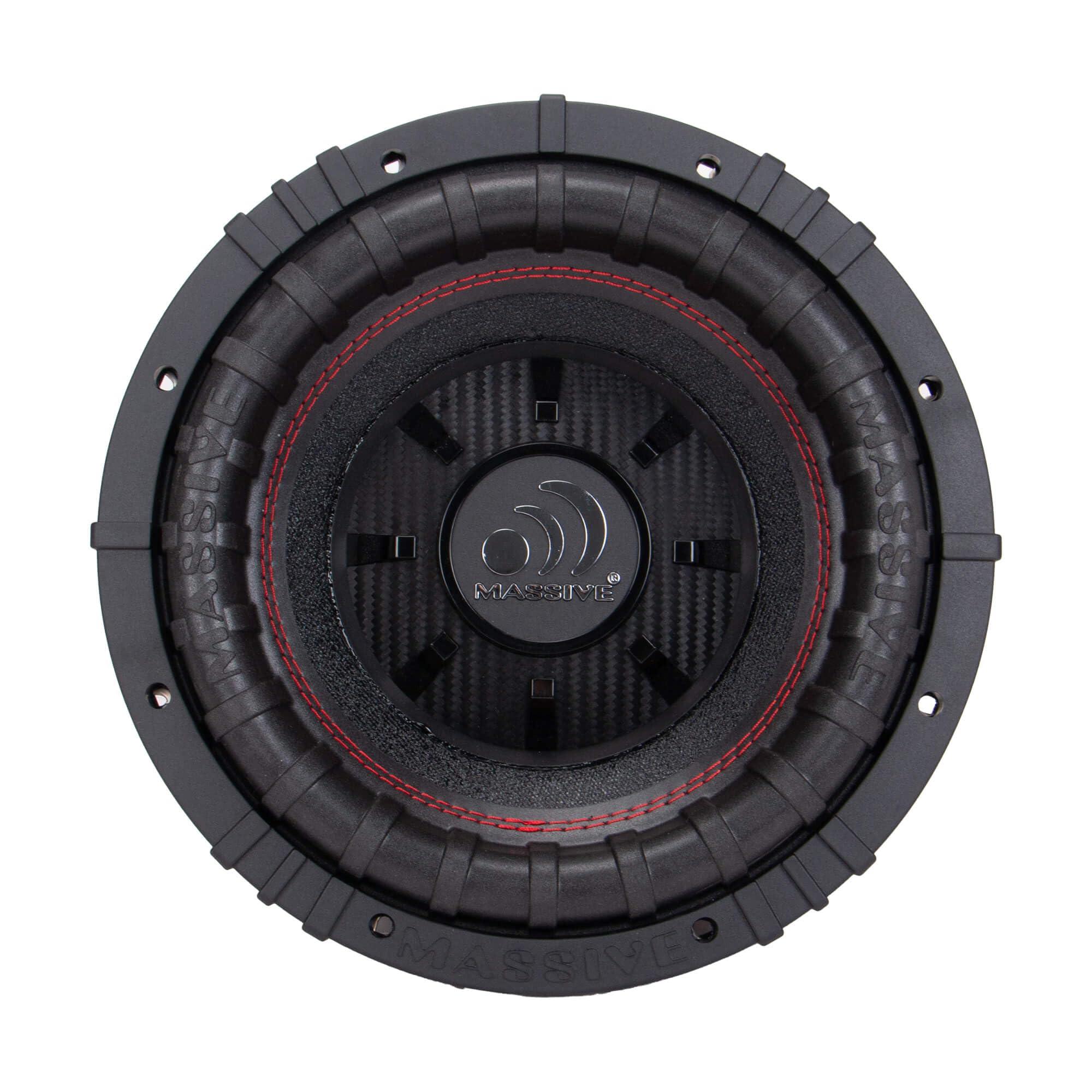 Massive Audio GTR102 10-inch 1000W RMS Dual 2 Ohm Subwoofer 2.5" Hi-Temp Voice Coil Heavy Gauge Steel Basket with Industrial Texture Painting || Features || Heavy gauge Steel Basket with Industrial Texture Painting || Dual Stacked High Flux Y30 120oz Strontium Ferrite Magnets || Dual Impedance / 2.5" Hi-Temp Voice Coil - Made in the USA || Custom High Roll Foam with MASSIVE Logo || Textured Non-Pressed Pulpe with Resin || || Specifications (1) || Size : 10-inch || RMS Range : 400w-1000w (800w RMS Ideal) || Peak Power : 1500w || Cone : Textured Non-Pressed Pulpe with Resin || Voice Coil : 2.5" Dual 2 Ohm || Surround : Custom High Roll Foam with MASSIVE Logo || Magnet : 120oz || Terminals : Terminal Case with Flexible Pure Copper Wire || || Specifications (2) || Basket : Heavy Gauge Steel || Tinsel Leads : High-Grade Woven Round || X-Max : 15mm || SPL : 83dB || FS : 38.1Hz || Ported Box : 11.2" H x 17.5" D x 11.7" W || Sealed Box : 0.75 ft3 || || All GTR Series subwoofers use dual tight red stitching thats sewn through a Textured Non-Pressed Pulp cone onto a Custom High Roll Foam surround. Then its bonded to a heavy gauge steel basket thats bolted to double stacked high flux Y30 120oz Strontium ferrite magnets. Then everything dances on a springy high-quality spider with high-grade woven tinsel leads that connect to a custom terminal case with flexible pure copper wire. || || These woofers scream sound quality and truly represent Massive Audio's commitment to value and performance.