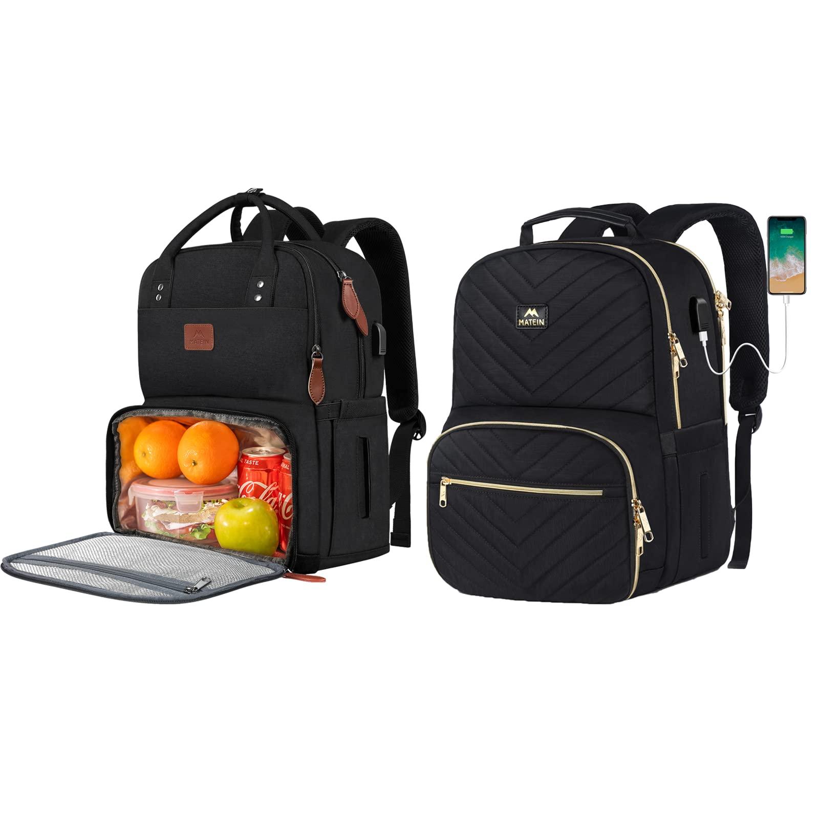 MATEIN Work Backpack Woman, Insulated Cooler Bag with Lunch Box, Lunch Backpack for Women, 15.6 Inch Laptop Work Back Pack with USB Port
