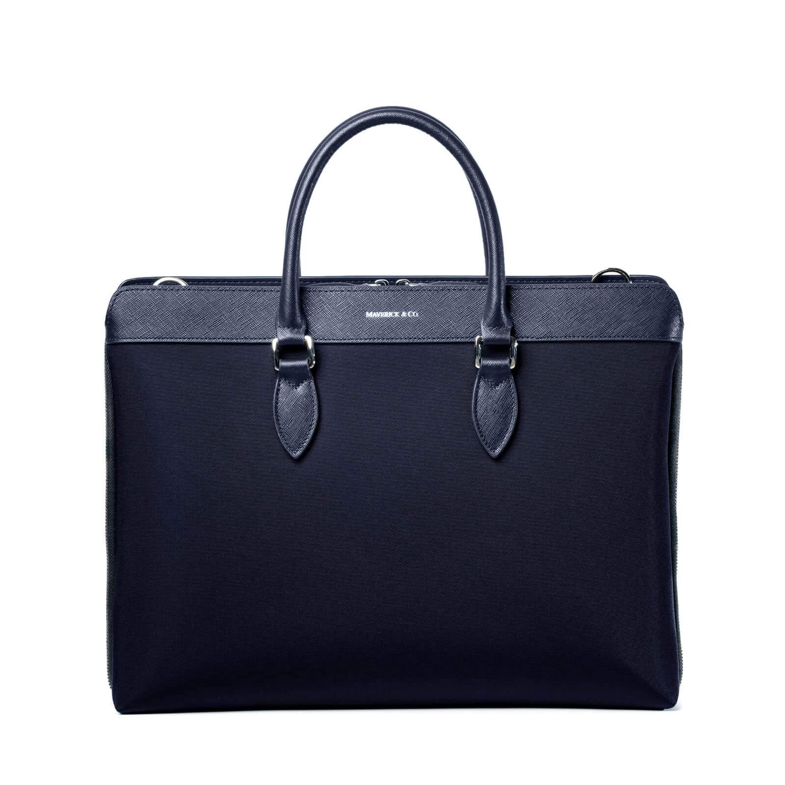Maverick & Co. Alpha Leather-Trimmed Briefcase (Navy)