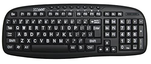 Get greater enjoyment working and playing on the computer, along with the added benefit of greater keystroke accuracy and reduced eyestrain! This EZ See Large Print Keyboard will help you see the keys on your keyboard better and type more easily. It's great for anyone who may have difficulty using a computer keyboard because they can't see the letters clearly. The perfect solution for seniors, as well as those with age related macular degeneration, glaucoma, diabetic retinopathy, cataracts and other low vision conditions that result in diminished vision. FEATURES & SPECIFICATIONS: - Bigger, bolder print on a standard size keyboard - Low profile, modern design - One-touch multi-media "hot keys" for easier access to commonly used commands - Ideal for low vision individuals, younger users learning to type, and for dim lighting - Compatible with Windows 7, Vista, 2003, XP and 2000 operating systems. (Not compatible with Apple Mac). - USB connection Product Measurements: 17.5 in. Long x 6.5 in. Wide x 0.75 in. Thick Product Weight: 1 lb. 4 oz.